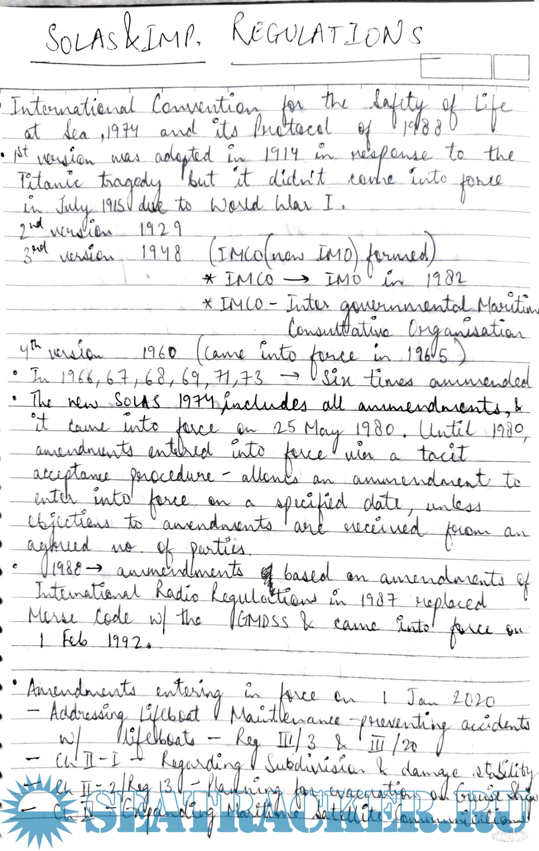 Handwritten Notes compiled for Mercantil Marime Department (MMD) Examinations, India