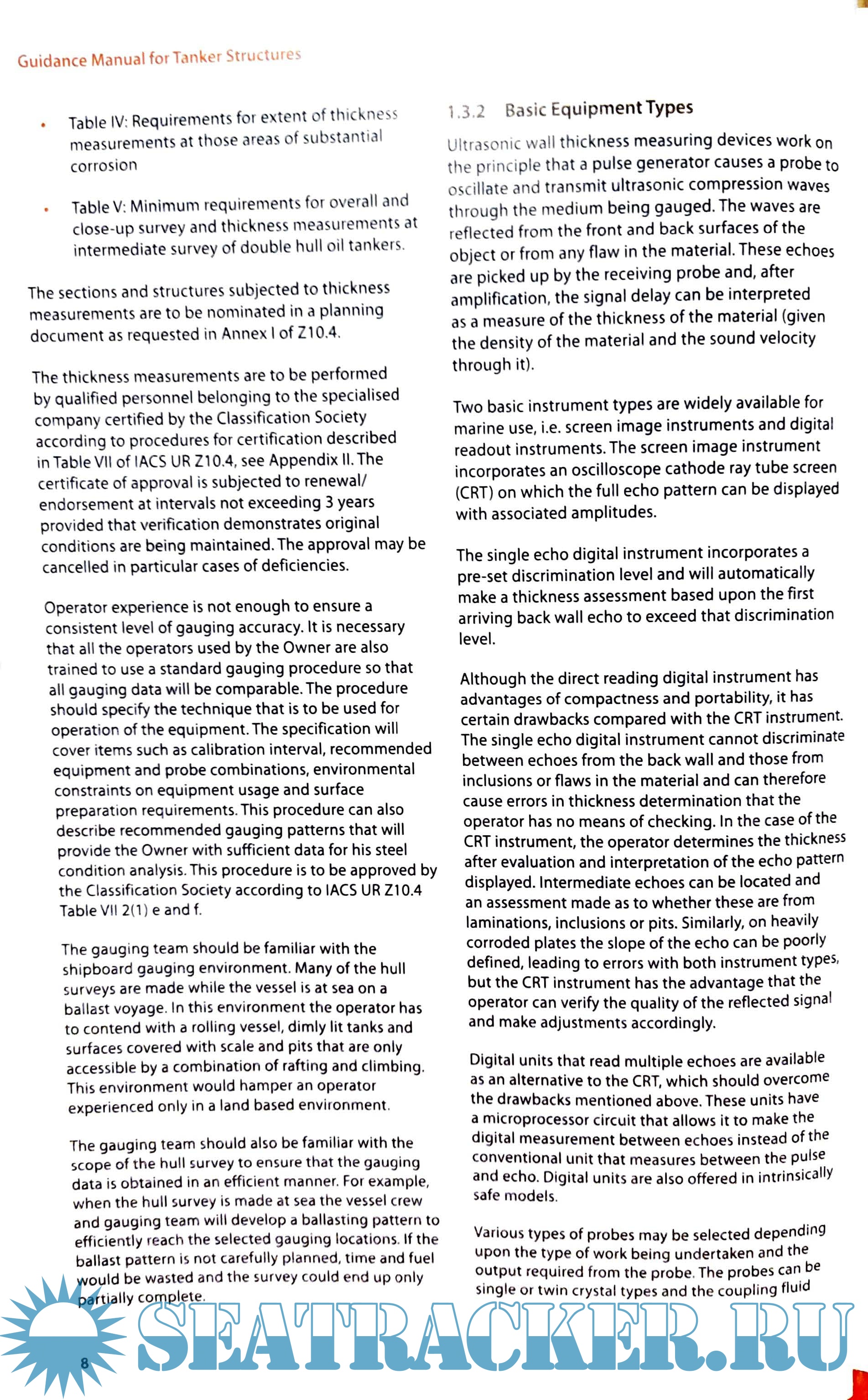 Year: 2023 Language: English Author: Witherby / Tanker Structure Co-operative Forum Genre: Technical literature Publisher: Witherby Edition: 4th ISBN: 978-1-914993-62-6 Format: PDF Quality: Scanned pages Number of pages: 296 Description: This collates the information required for the assessment of ballast and cargo tank structures. Based on the experience and practices used by members of the Tanker Structure Co-operation Forum, it covers survey preparation and execution guidelines, maintenance guidelines and survey data analysis.This edition also incorporates IACS Unified Requirement, UR Z Survey and Certification, IACS UR Z10.4 'Hull Surveys of Double Hull Oil Tankers' (revised 18th February 2018). Additional info: The Tanker Structure Co-operative Forum (TSCF) is an informal technical body whose membership is voluntary and comprised of Oil Companies, Independent Owners/Operators and Classification Societies who will actively contribute to the TSCF'S Mission. The mission of the TSCF is to advance maritime safety through improvements in the design and maintenance of tanker structures. This is achieved by sharing technical knowledge and experience in order to gain a better understanding of the safety performance of tanker structures in service. Specific topic areas of interest include corrosion, structural defects, inspection procedures, and criteria for determining renewal of damaged or corroded structure. The TSCF is committed to sharing accumulated experience on tanker structures with the marine industry. This is achieved through prompt public release of technical manuals and information papers, and proceedings of TSCF Shipbuilder's Meetings.