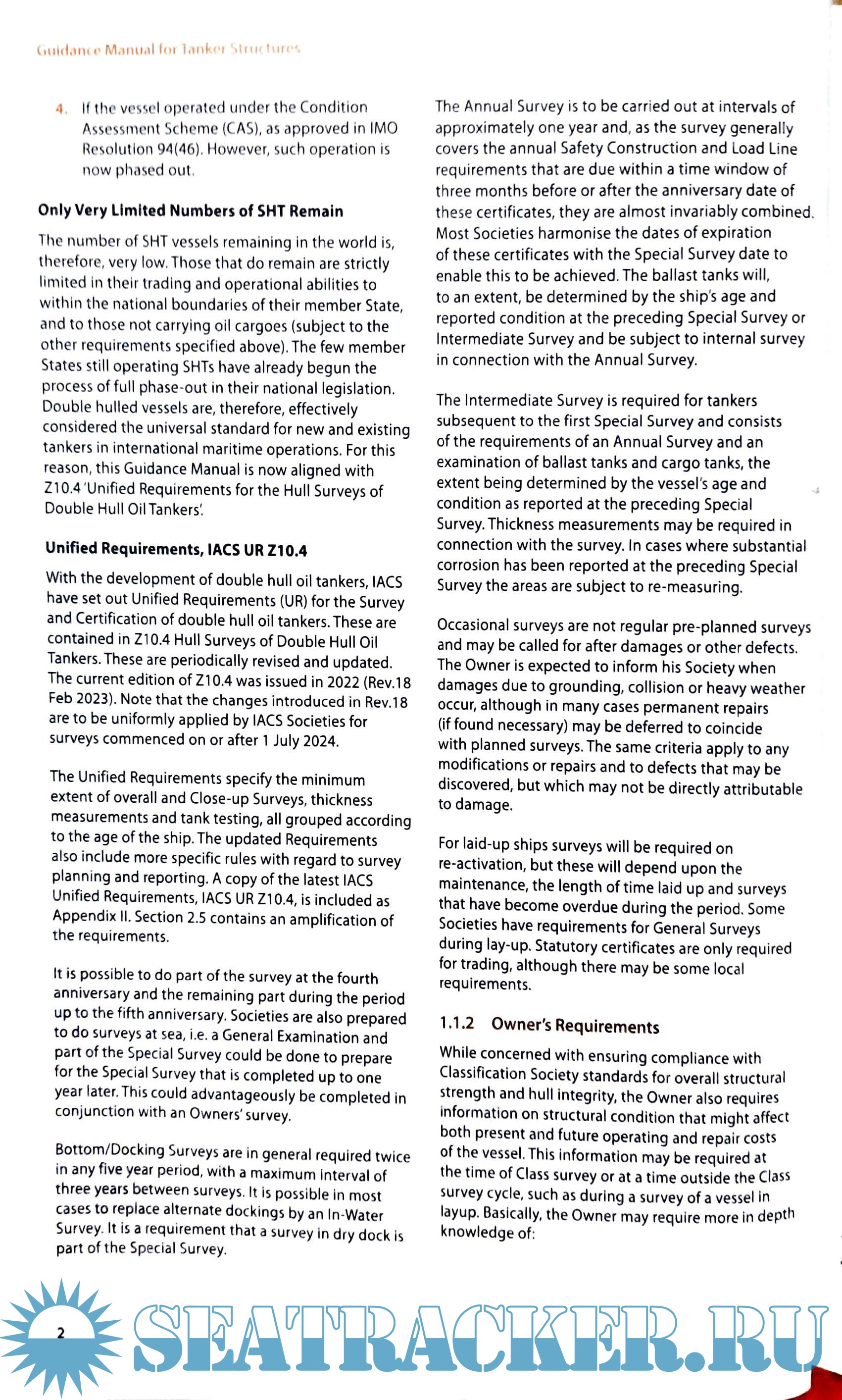 Description: This collates the information required for the assessment of ballast and cargo tank structures. Based on the experience and practices used by members of the Tanker Structure Co-operation Forum, it covers survey preparation and execution guidelines, maintenance guidelines and survey data analysis.This edition also incorporates IACS Unified Requirement, UR Z Survey and Certification, IACS UR Z10.4 'Hull Surveys of Double Hull Oil Tankers' (revised 18th February 2018).