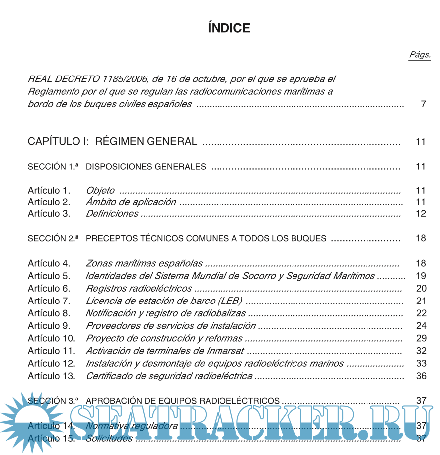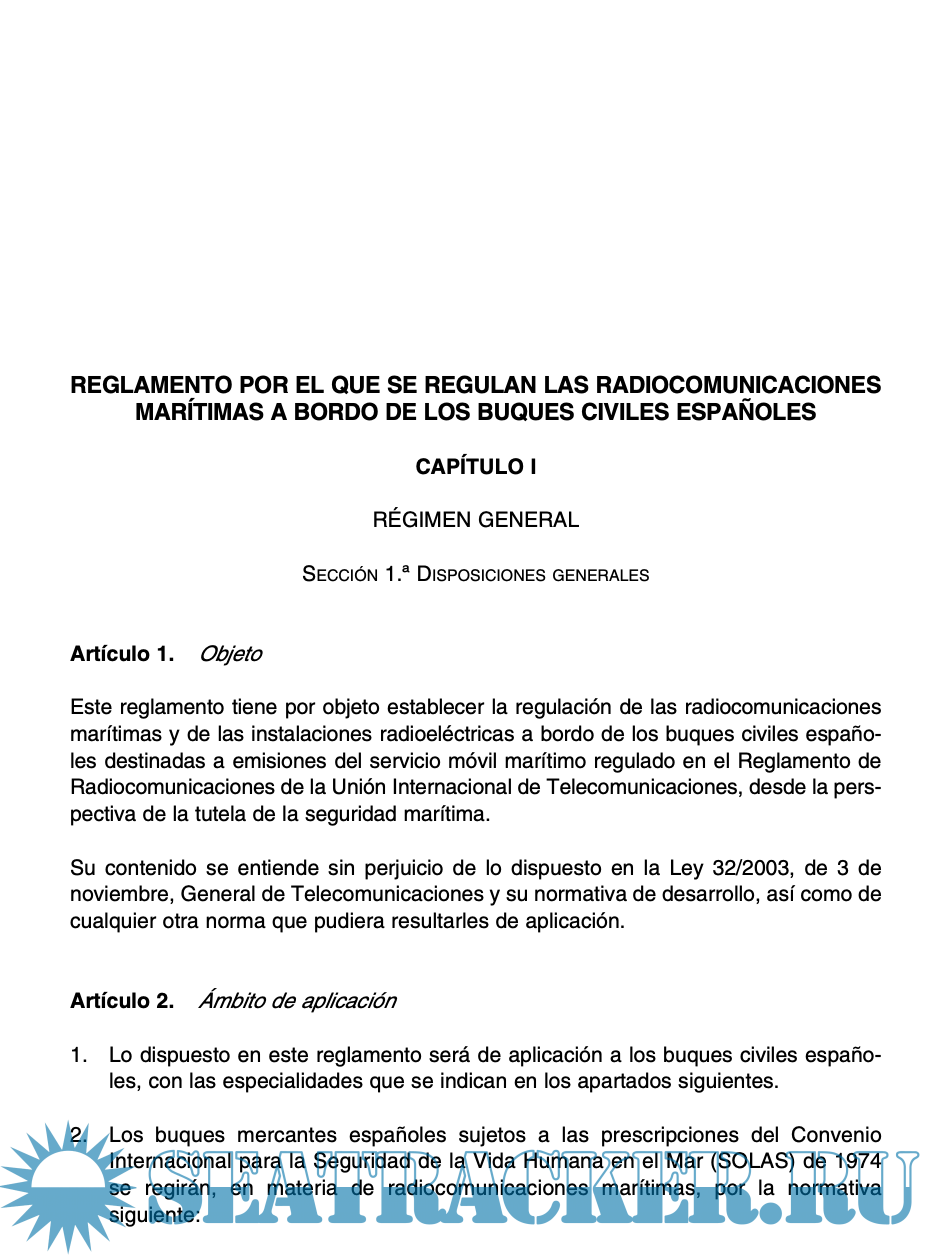 Description: Spanish normative text about radiocomunications in spanish merchant navy