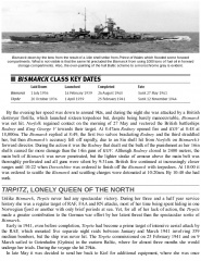 This volume covers the famous German sister-ships whose fates were so very different - Bismarck had a short but glorious career, first sinking HMS Hood and then in turn being sunk by the Home Fleet, whereas the Tirpitz spent most of the war skulking in Norwegian fjords, fending off attacks by midget submarines and carrier aircraft before being finally sunk by enormous specially designed bombs dropped by RAF Lancasters.