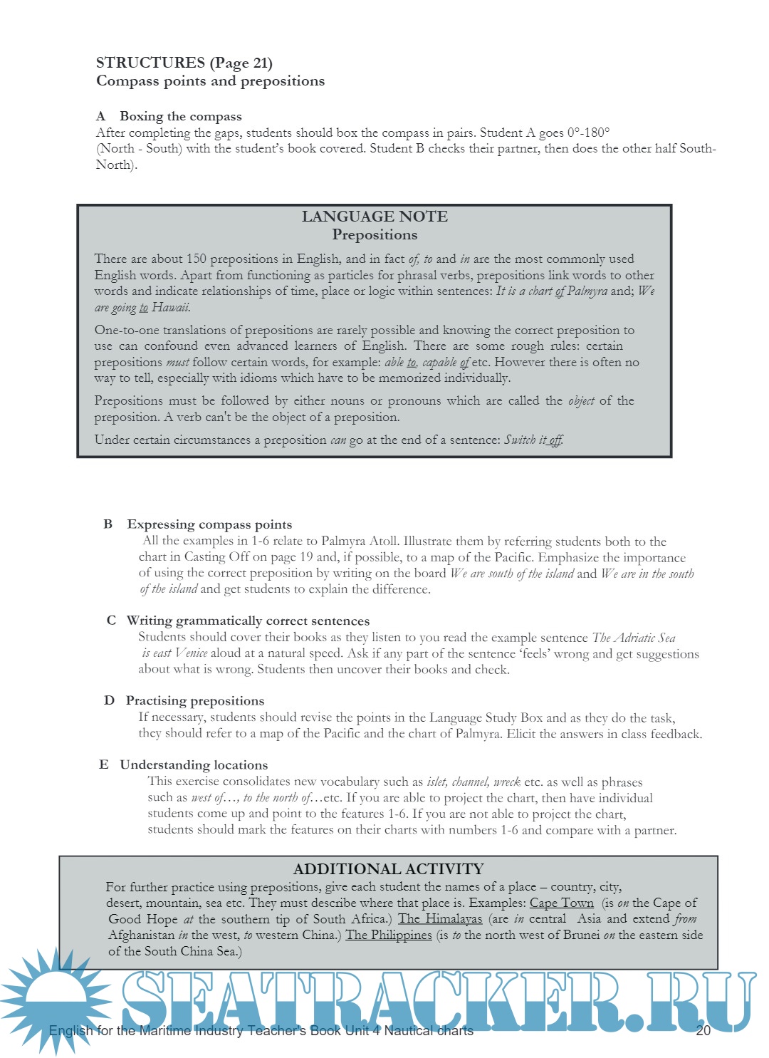 Year: 2014 Language: English Author: Tony Grice Genre: Textbook Publisher: Idris Format: PDF Quality: eBook Pages count: 82 Description: This teacher’s book is written to accompany the English language course book for seafarers English for the Maritime Industry - published by Idris Education (2012). This teacher’s book is free of charge and available in the form of a PDF download from the Idris Education website. The course book English for the Maritime Industry and its accompanying audio CD are not free of charge. They are available to buy from book distributors, book shops and through the website www.idrisconsultancy.co.uk. Answers to all the questions and exercises that appear in the course book are to be found in pages 107 -125 of the course book itself, and the answers are not repeated in this teacher’s book. However, the teacher’s book does contain the following which do not appear in the course book: - Extra teaching suggestions - Background theoretical language notes - Language exercises which are additional to those in the course book - Games, puzzles, role plays and discussions to provide extra speaking practice