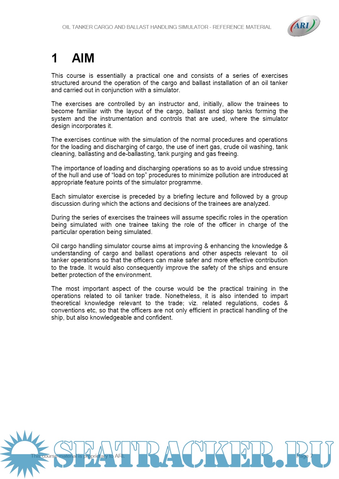 Description: This course is essentially a practical one and consists of a series of exercises structured around the operation of the cargo and ballast installation of an oil tanker and carried out in conjunction with a simulator.