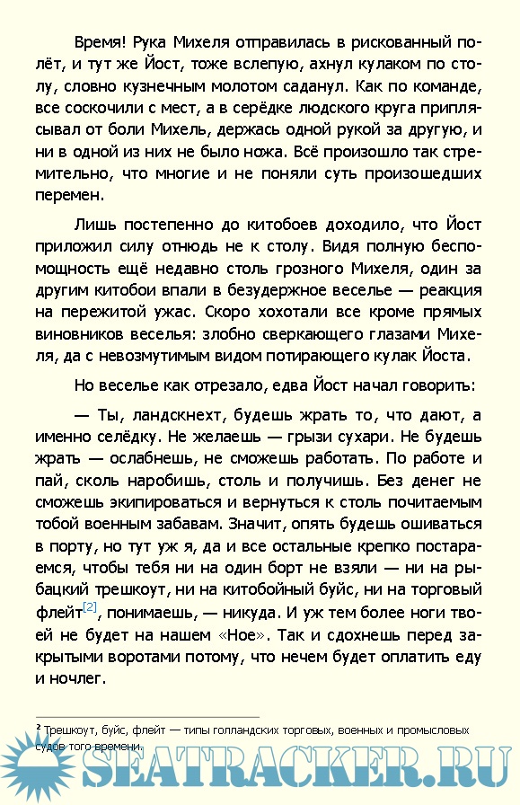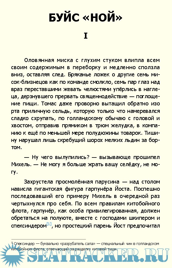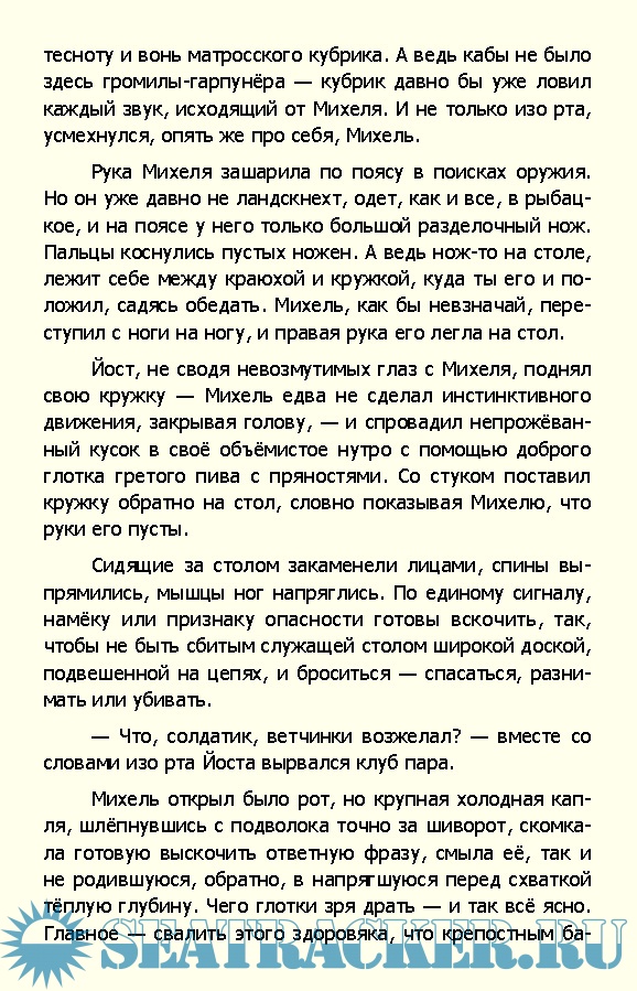 Описание: Первая половина XVII века. Европа погрязла в очередной бестолковой и жестокой войне - Тридцатилетней. Главный герой романа, ландскнехт Михель, после ряда смертельных приключений решает сменить "профиль деятельности" и заделаться пиратом. Для этого ему необходимо захватить корабль. Судьба забрасывает Михеля на борт китобоя "Ной". Но кровавые события прошлого постоянно преследуют бывшего наемника.