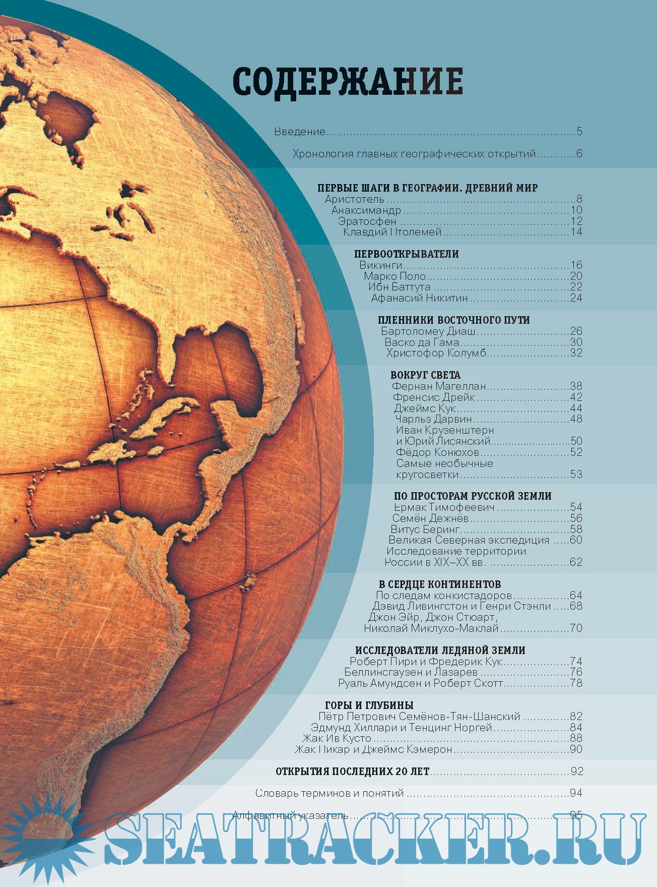 Описание: Путешествия и открытия манили людей еще в древние времена. В поисках благоприятных условий и пищи они переселялись в Азию и Европу, а в дальнейшем открыли Америку и Австралию. Как происходили самые значимые открытия в истории человечества? Кто бороздил моря и океаны, открывал неизведанные острова и целые континенты? Вы узнаете все о главных географических открытиях – от древних времен до наших дней.