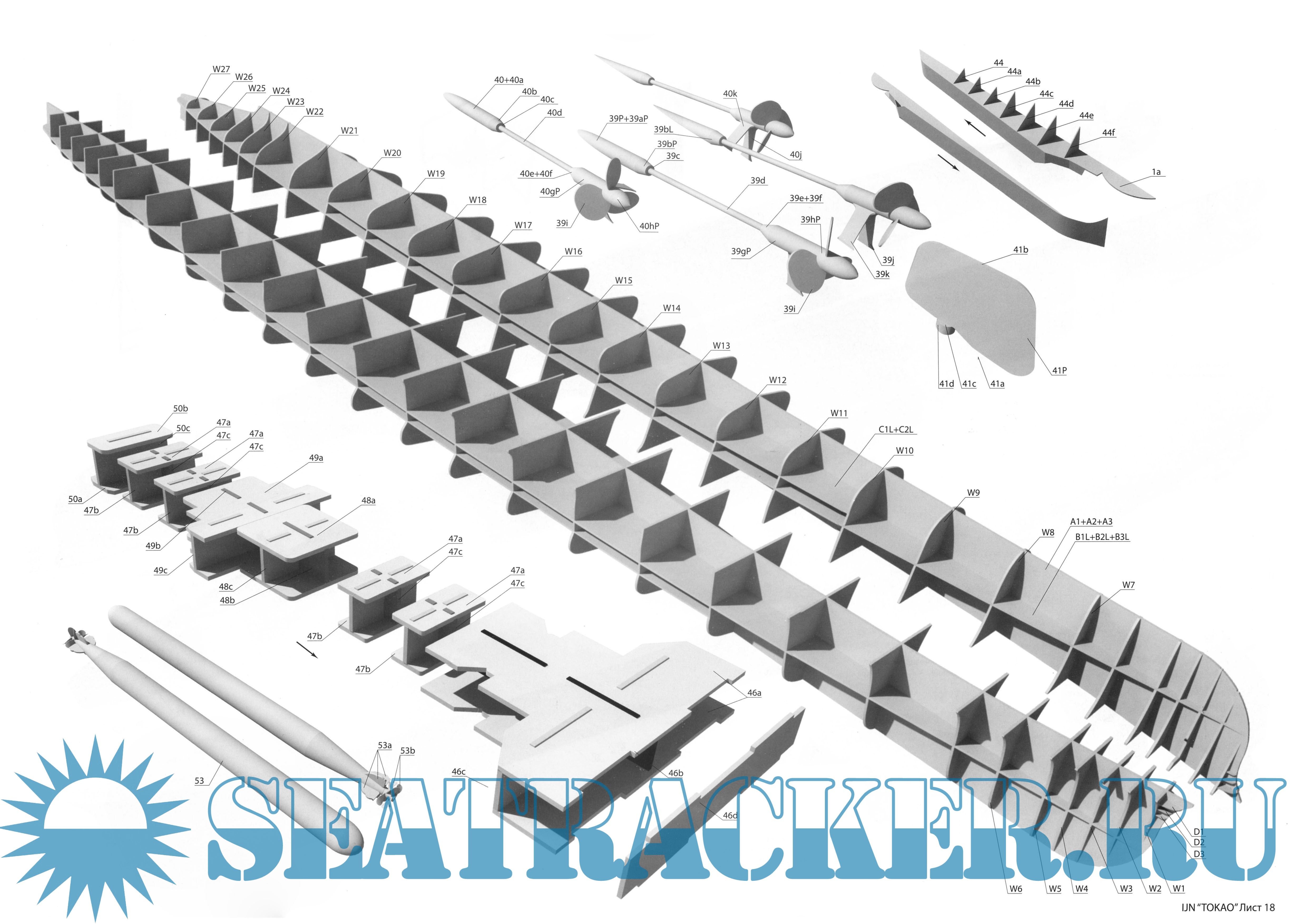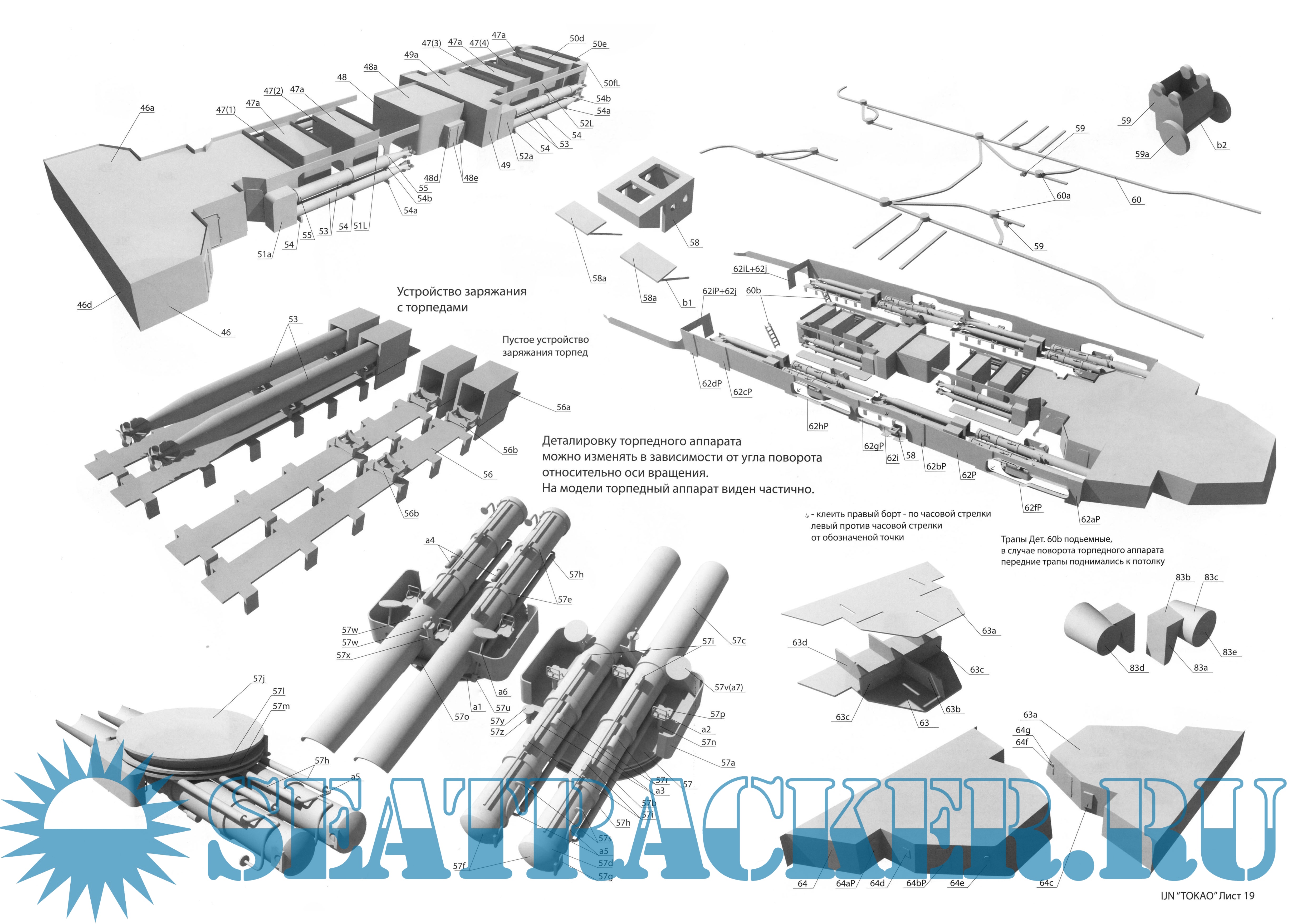 43 листа цветных выкроек и инструкций для изготовления бумажной модели японского тяжёлого крейсера IJN Takao в масштабе 1:200Скриншоты