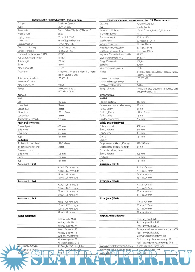 Year: 2017 Language: Multilingual Author: Witold Koszela Genre: History Publisher: Kagero Edition: TopDrawings Format: PDF Quality: eBook Pages count: 58 Description: The American battleship USS “Massachusetts” is one of the best known units of its class during World War Two. It was built at Fore River (Quincy) Shipyard in Massachusetts in 1939–1942 and was one of four South Dakota type battleships. The crew serving on USS “Massachusetts” humorously nicknamed their ship the “Big Mamie”. Building started in July 1939; the launching took place on the 23rd of September 1941. The godmother of the ship was former Navy Secretary Charles Francis Adams’ wife. The equipping took more than half the year and on 12th of May 1942 the unit was introduced into the service. The first commander of the ship was Captain Francis E. M. Whiting. Service of USS “Massachusetts” teemed with interesting events from the beginning. After finishing all tests, trials and crew trainings, the ship left home waters in October 1942. It was assigned to securing the landing of Allied forces in North Africa. This is when the ship gained its fame after winning the battle with the unfinished French battleship “Jean Bart” stationed in port of Casablanca. The damage caused by USS “Massachusetts” was so severe that French unit was never finished and didn’t enter operational service. During that fight, she also caused extensive damage to the port’s infrastructure and damaged some transport units. The crucial event of the unit’s service was the battle with a group of French warships which managed to escape from Casablanca. “Massachusetts,” together with assisting cruisers sank the French cruiser “Primauguet” as well as two destroyers: “Boulonnais” and “Fougueux”; another one – “Malin” – was severely damaged. The battleship took its further service on the Pacific waters, quickly becoming the “work horse” of the fleet. It took part in dozens of different operations against Japanese forces. USS “Massachusetts” participated in countless escorts of aircraft carriers, supported the forces’ landings with its guns, and covered the convoys with the AA fire. The battleship repeatedly shelled the Japanese positions – many of them on home islands. For its service, the unit was awarded with eleven Battle Stars gaining the label of “Remarkably Merited Battleship” during the fight against Japan. After the war the ship continued its service on the Pacific for a short period of time. In March 1947 it was transferred to the Atlantic Reserve Fleet based in Norfolk, where it stayed until June 1962. In that year the unit was discharged from the US Navy. Originally there was a plan to send the battleship to the scrapyard but thanks to the efforts of war veterans and Massachusetts state inhabitants the deserved unit was saved. In the year 1965 the battleship was moved to Fall River where – after proper adaptation and stating it the garden of remembrance of fallen WW2 soldiers – it was open for tourists. Today the ship is permanently anchored in Battleship Cove – a place known as the biggest cluster of monument ships. It is grouped with the destroyer, USS “Joseph P. Kennedy, Jr.” and submarine, USS “Lionfish.”. “USS “Massachusetts” is preserved in mint condition and it is the great relic which allows the visitors to feel the “strength” of the unit and get to know the armament, architecture and construction of WW2 era battleships.
