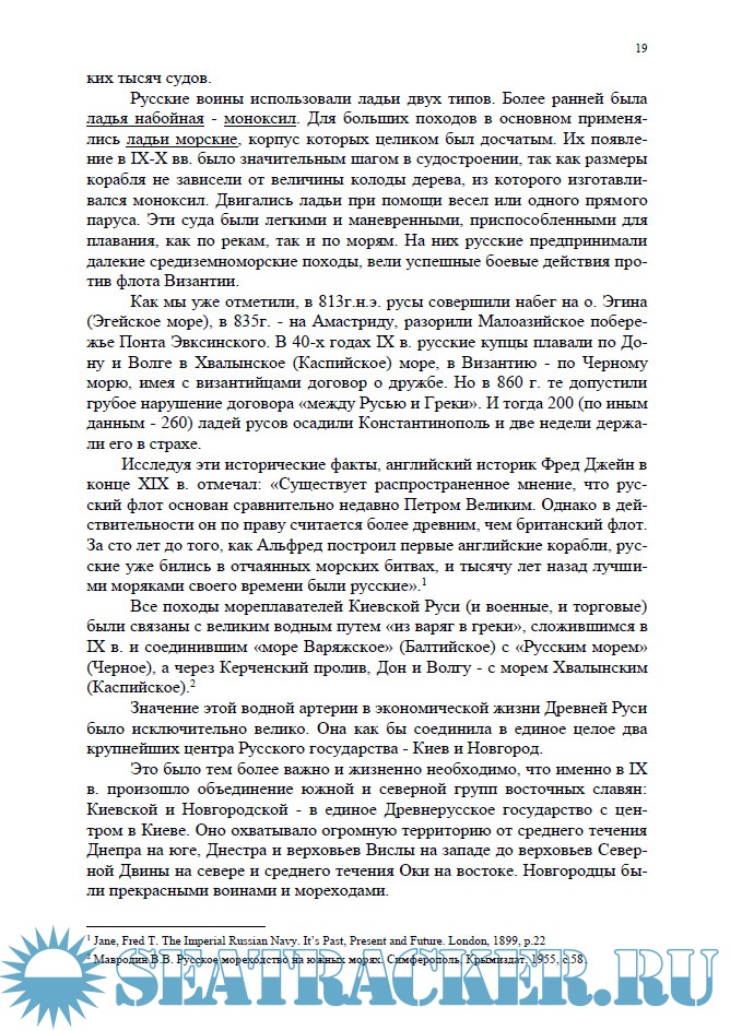 Описание: В хронологическом порядке раскрывается историю зарождения и развития мореплавания славян, а затем - государства Российского, появление военного, торгово-транспортного и рыбопромыслового флотов России. Описывается история великих географических открытий россиян, показывается настоящее и перспективы развития флотов России.