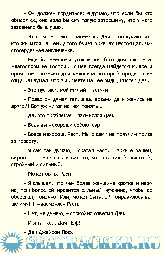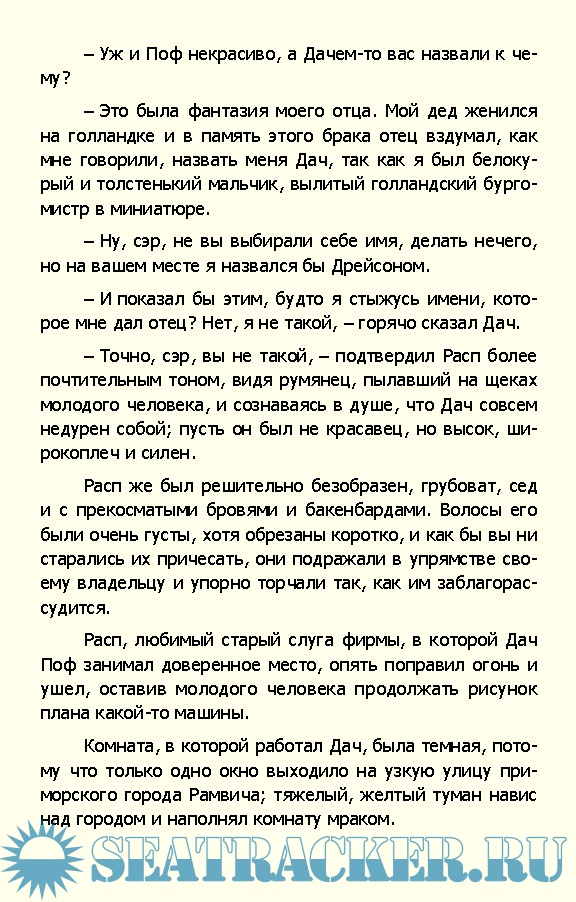 Содержание Сокровища глубин Глава I. Контора водолазных аппаратов Глава II. Золотые обещания Глава III. Под водой Глава IV. Домашний очаг Глава V. Сон наяву Глава VI. Приятный вечер Глава VII. Борьба Глава VIII. Нарушение соглашения Глава IX. Показание Полло Глава Х. Побег Глава XI. Наконец отправились Глава XII. В каюте Бесси Глава XIII. Приговор доктора Глава XIV. Подозрения капитана Глава XV. Утопающий Глава XVI. Безмолвное море Глава XVII. Окум ошибся.... Глава XVIII. Покровители сокровищ Глава XIX. У сокровищ Глава XX. Угощение для акул Глава XXI. Открытие Глава XXII. Опасность Глава XXIII. Тень сгущается Глава XXIV. Подводная экскурсия Глава XXV. Хитрая лисица Глава XXVI. Приключение Распа Глава XXVII. Доклад Полло Глава XXVIII. Хорошее намерение Глава XXIX. Тревоги Эстеры Глава XXX. Борьба за жизнь Глава XXXI. Пробуждение Глава XXXII. Смертельная борьба. Глава XXXIII. Ренегаты Глава XXXIV. Как непостоянны друзья Глава XXXV. Посол Окума Глава XXXVI. Рассказ Сэма Окума Глава XXXVII. Тайная услуга Глава XXXVIII. Словно серая змея Глава XXXIX. Дач в опасности Глава XL Планы Распа Глава XLI. Пленники Глава XLII. Рассказ Сэма Окума Глава XLIII. Прощайте Глава XLIV. Недоумение Глава XLV. Мщение Лоре Глава XLVI. Катастрофа Глава XLVII. Заключение