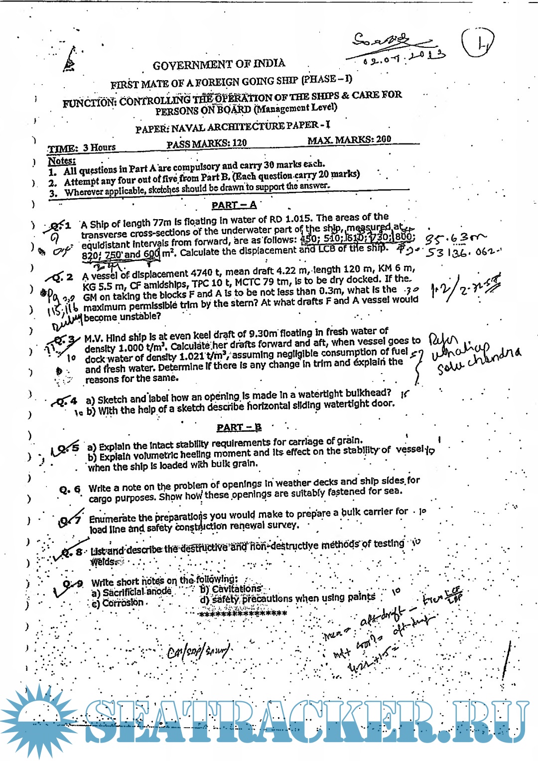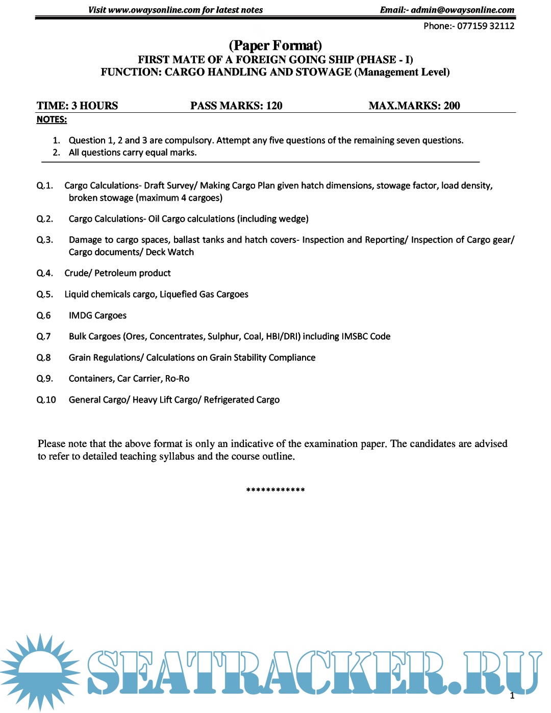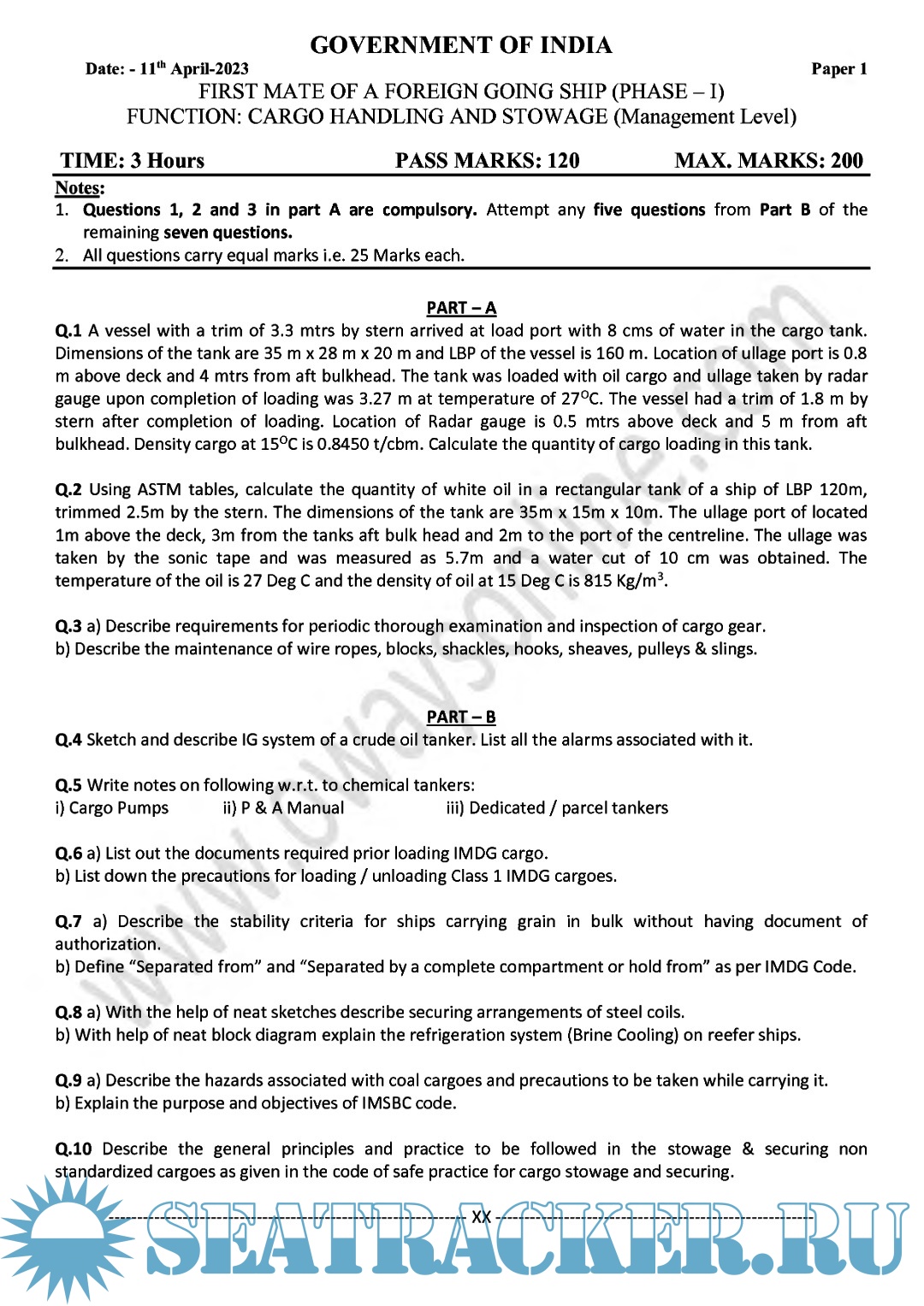 Question Paper Set (May 2023) Phase II (Chief Mate F.G.) Mercantile Marine Department (MMD), India…