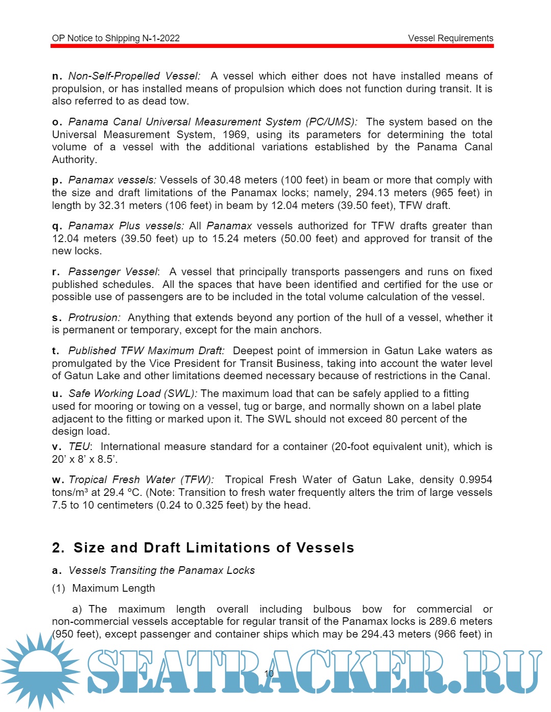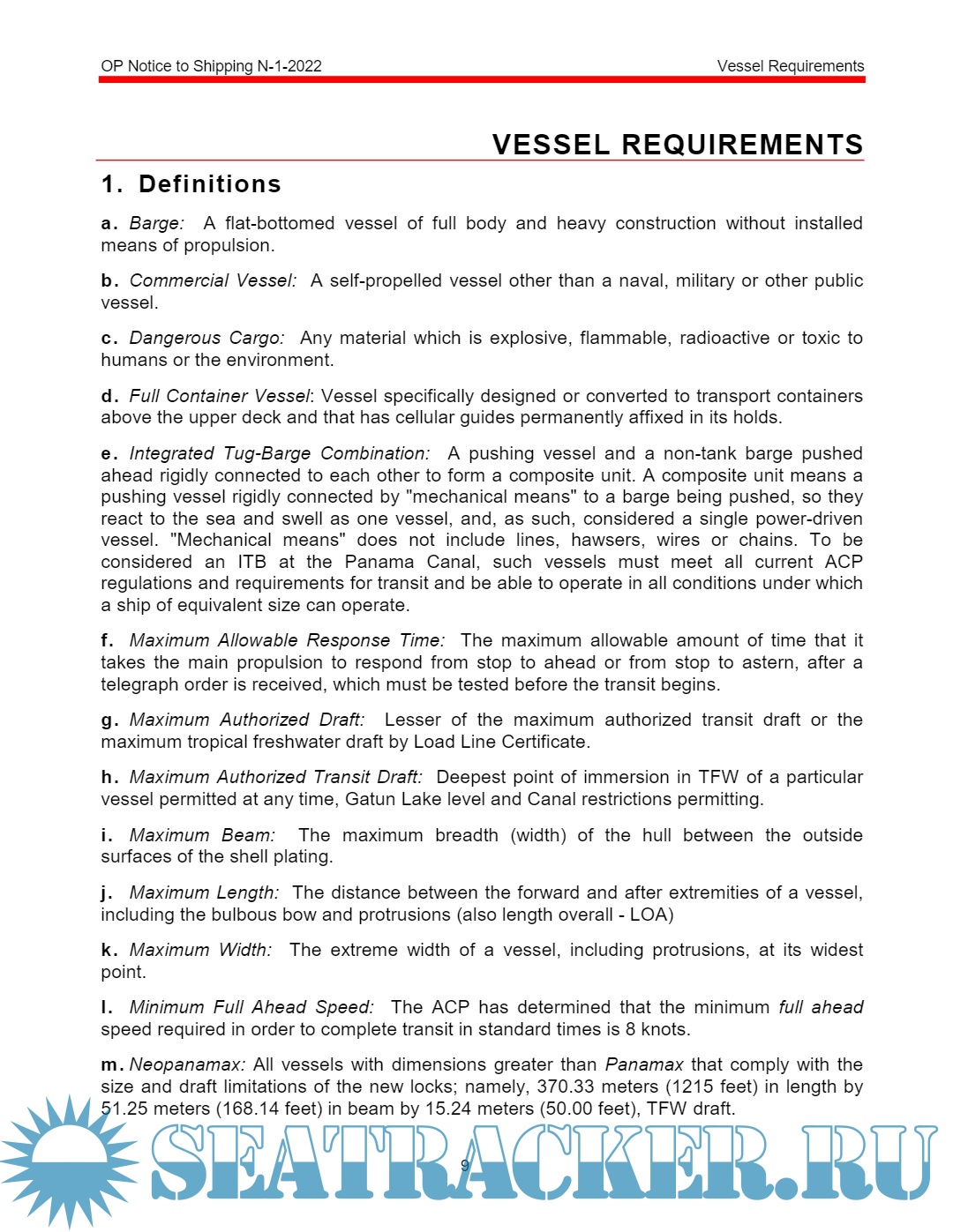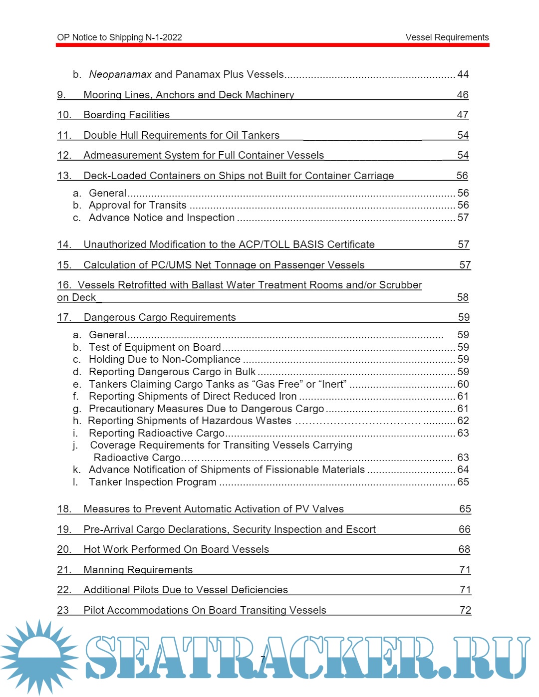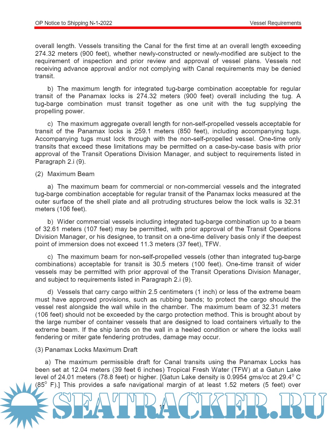 Panama Canal Vessel requirements OP notice to shipping 1 of 2022