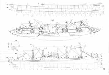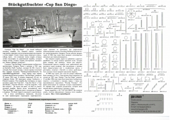 Описание: 27 листов цветных выкроек и инструкций для изготовления бумажной модели сухогруза "Сан Диего" (Германия) в масштабе 1:200