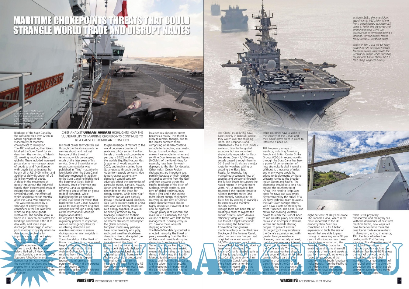 Description: Warships IFR puts the spotlight on the latest developments in the world’s navies. It covers current defence issues and has comments by leading analysts. The magazine regularly includes features on the Royal Navy and the US Navy in addition to incorporating news and features on all other navies across the globe. Warships IFR frequently carries in-depth articles on naval heritage.WARSHIPS International Fleet Review is published 12 times a year by Tandy Media Ltd who also publish Shipping Today & Yesterday (which provides news and features from the world of merchant shipping).