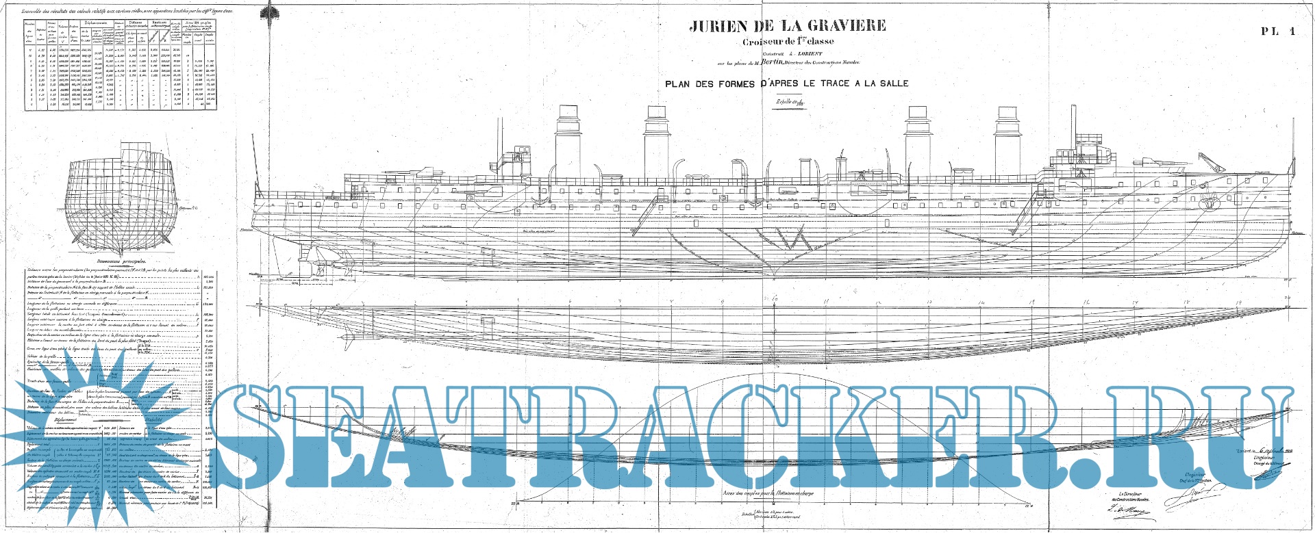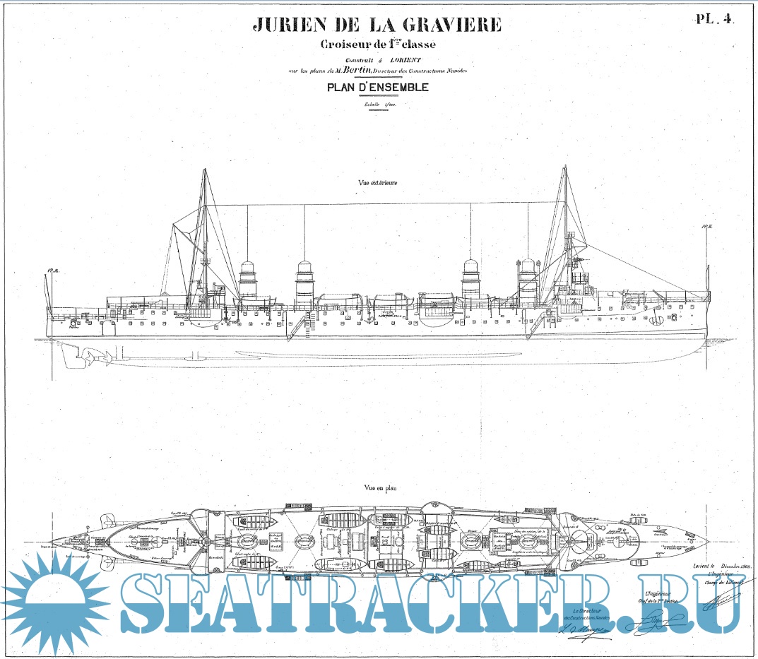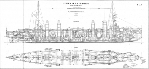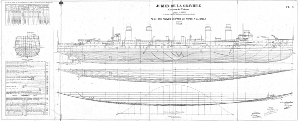 Архивные чертежи французского крейсеоа 1-го ранга JURIEN de la GRAVIERE 1899 год