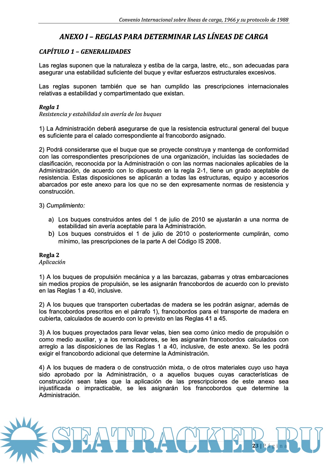 Description: Texto consolidado del Convenio Internacional sobre las Líneas de Carga, 1966, y su protocolo de 1988: Artículos y Anexos.