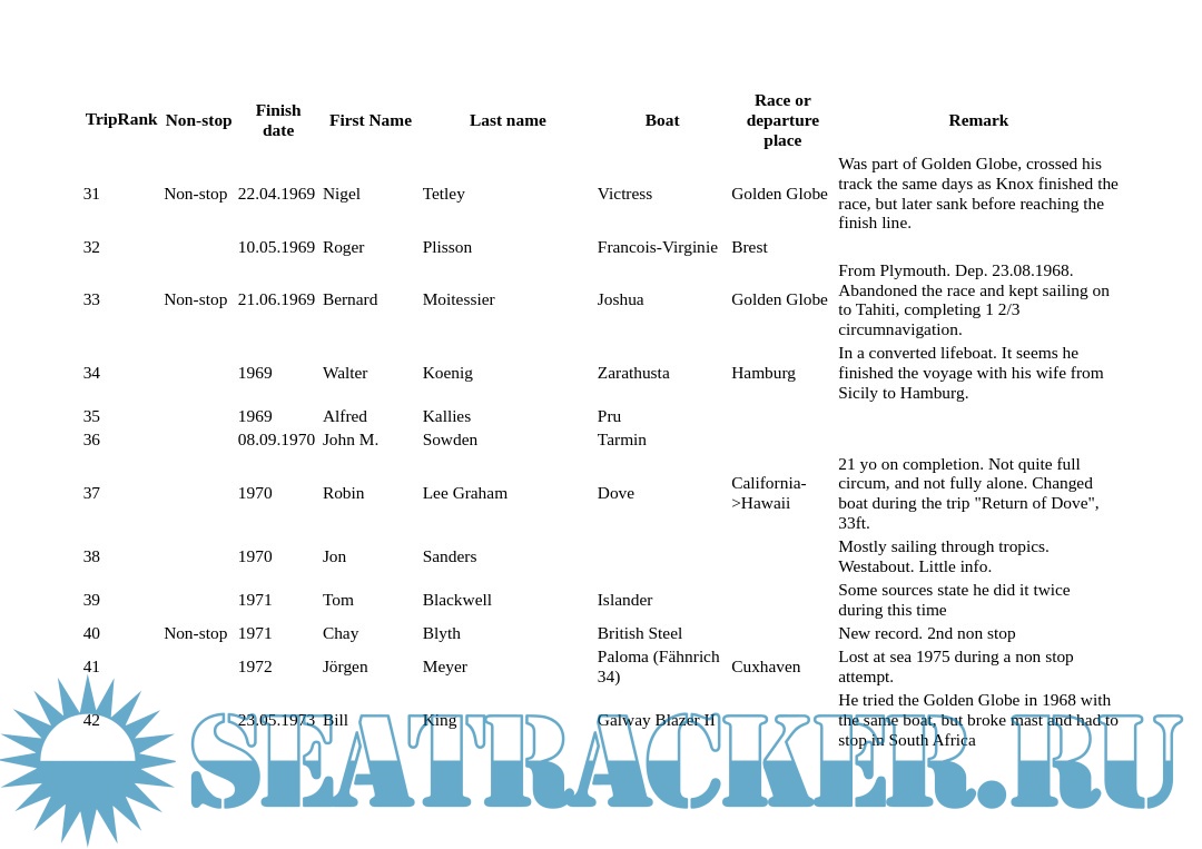 Description: List of sailors who completed a solo circumnavigation