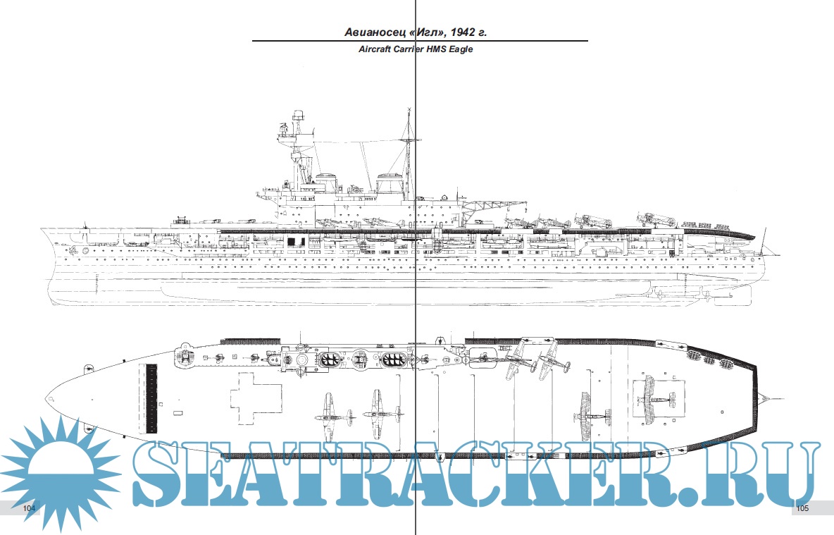 Описание: Авианосец «Игл» (HMS Eagle) – первый корабль данного класса, созданный по схеме, признанной классической: со сплошной полетной палубой и надстройкой-«островом», сдвинутой к правому борту. Многие из примененных на нем технических решений были многократно повторены на последующих авианосцах, не только британских. Заложенный накануне Первой Мировой войны по заказу правительства Чили как линейный корабль «Альмиранте Кохрейн», будущий авианосец был уже на стапеле перекуплен Адмиралтейством и перестроен («Игл» стал единственным кораблем британских ВМС с метрическими единицами измерения и инструментами, маркированными на испанском языке). На момент ввода в строй в 1924 г. он являлся самым большим авианосцем в мире. С первых же дней Второй Мировой «Игл» воевал в Индийском океане, Средиземном море, Южной Атлантике. 11 августа 1942 г., во время операции «Пьедестал» – одной из самых знаменитых операций Королевского флота, сопровождая конвой на Мальту, авианосец был потоплен немецкой подлодкой, а оставшийся без воздушного прикрытия конвой разгромлен Люфтваффе.