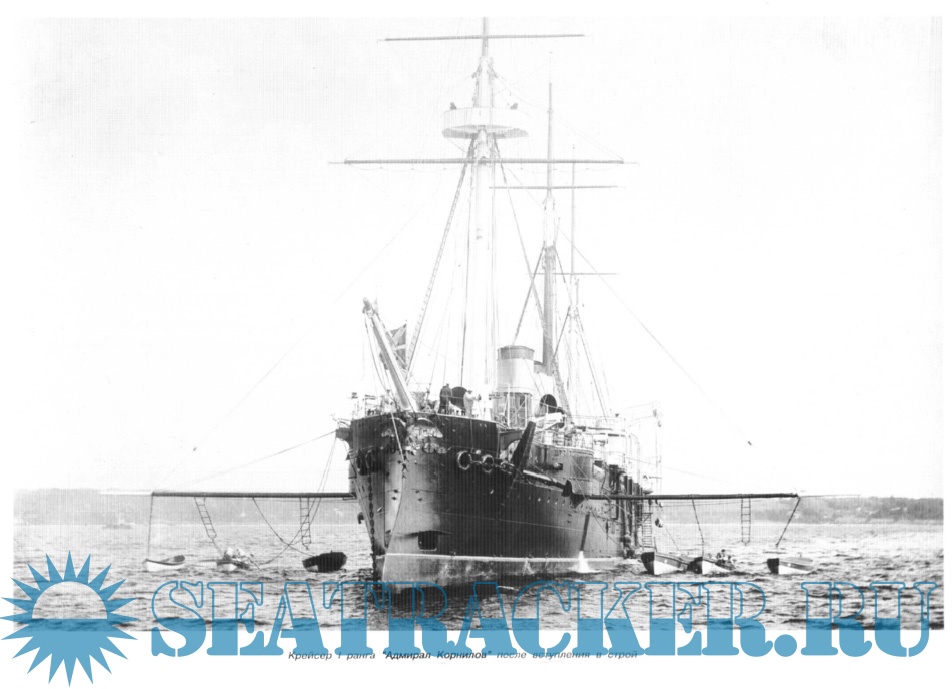 Двадцать лет содрогалась она под топотом многих сотен ног сменившихся в команде матросов, на ней школу службы, плаваний и боевой подготовки проходили кадеты и гардемарины последних поколений старого флота. С честью пронес корабль по океанам данное ему имя одного из самых ярких представителей отечественной флотоводческой школы - вице-адмирала Владимира Алексеевича Корнилова.
