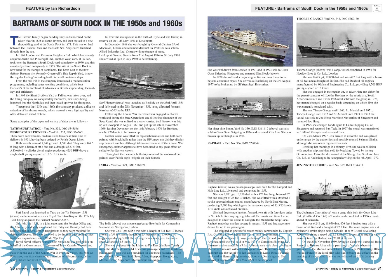 Description: Shipping T&Y is a monthly magazine for the shipping enthusiast offering up-to-date information, topical and in-depth historical articles alongside images, many of which are exclusive to the magazine.Shipping Today & Yesterday is a specialist magazine for the shipping enthusiast offering up-to-date information, topical and in-depth historical articles.Shipping Today & Yesterday was first produced in March 1990 by, the then Editor and Publisher, John Young. The first edition stated that it would, “offer a news service covering important developments in the Shipping industry Today and will look back at ships and events of Yesterday, with regular features on merchant ships
