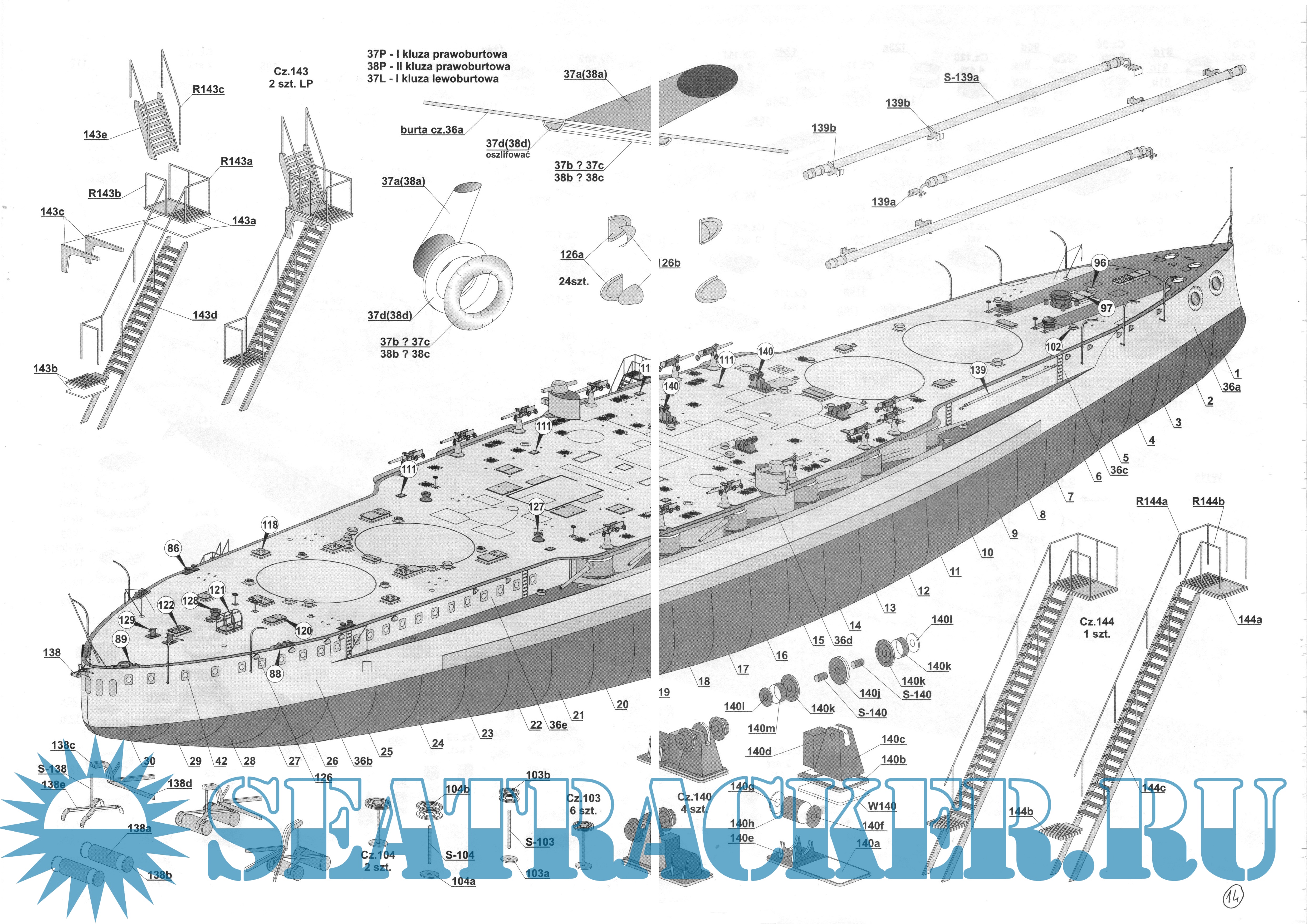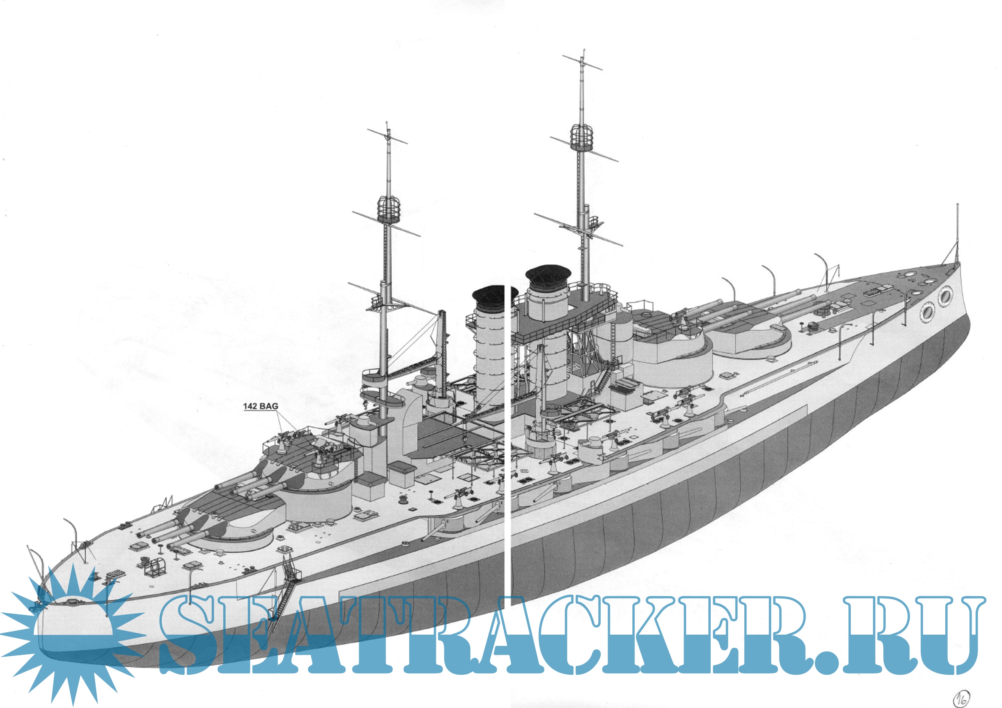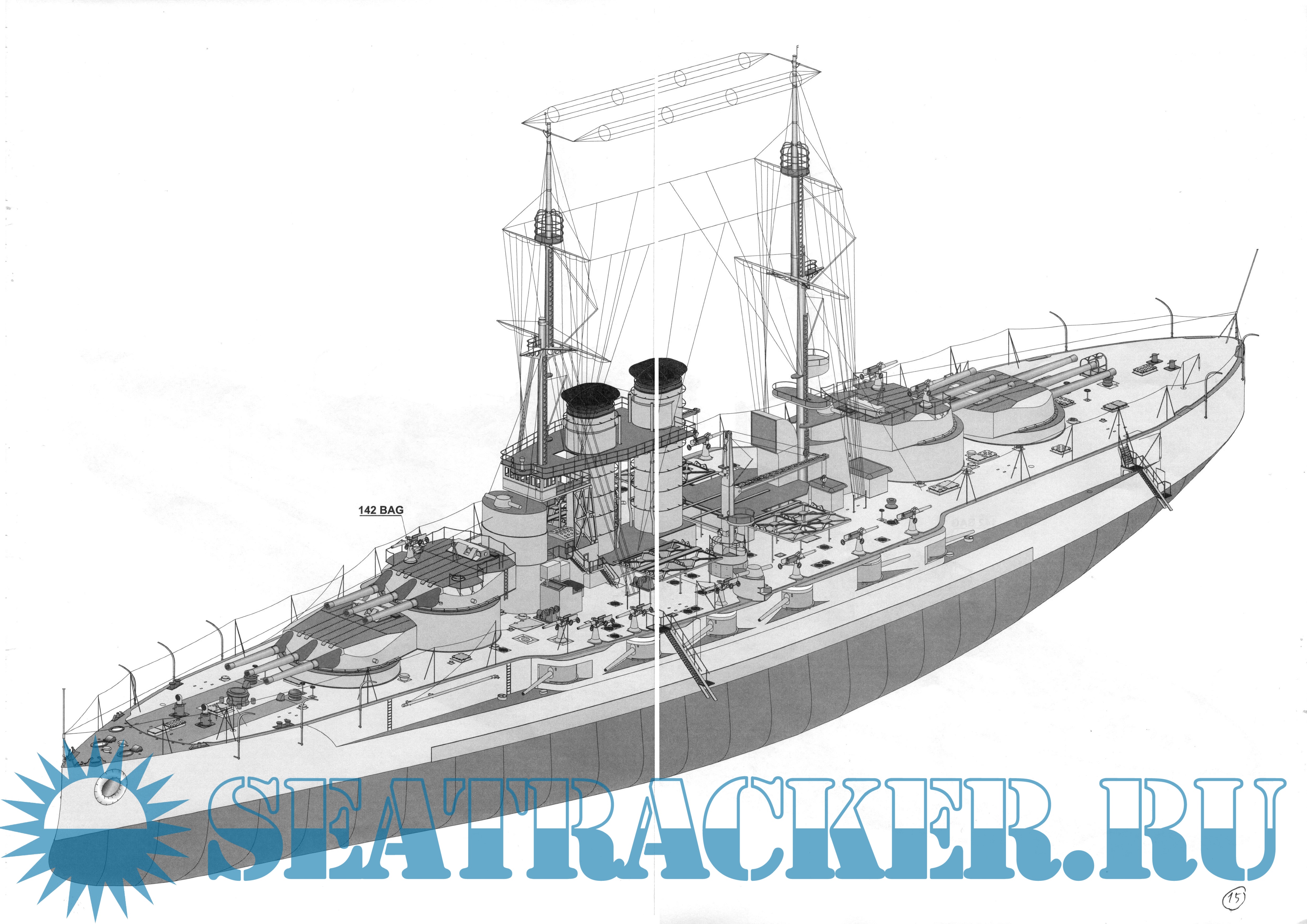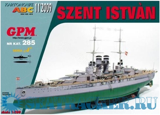 40 листов цветных выкроек и инструкций для изготовления бумажной модели Австро-Венгерского линкора SMS Szent Istvan в масштабе 1:200