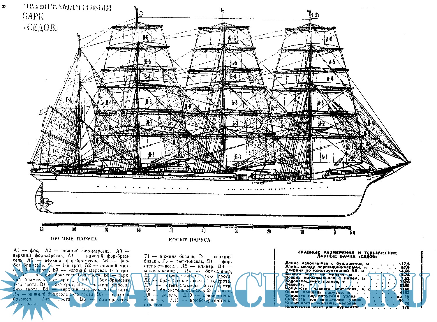 Описание: 7 листов чертежей барка "Седов" (Россия)