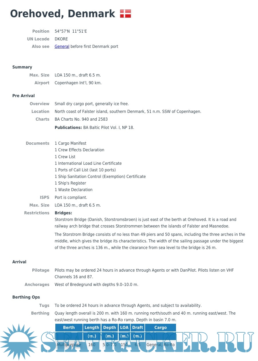 In this pack you can find all relevant info about any port, among other things: