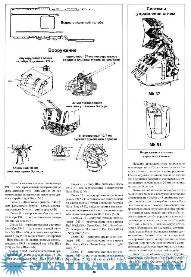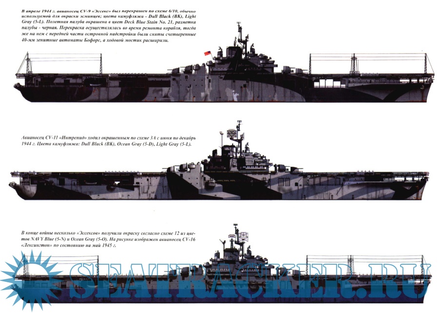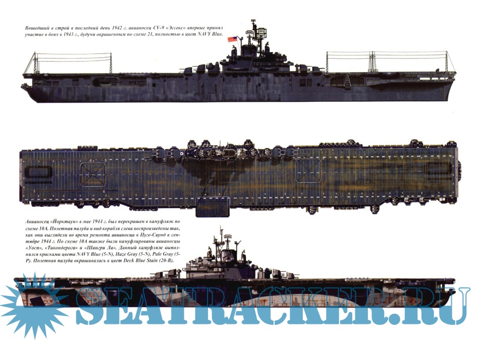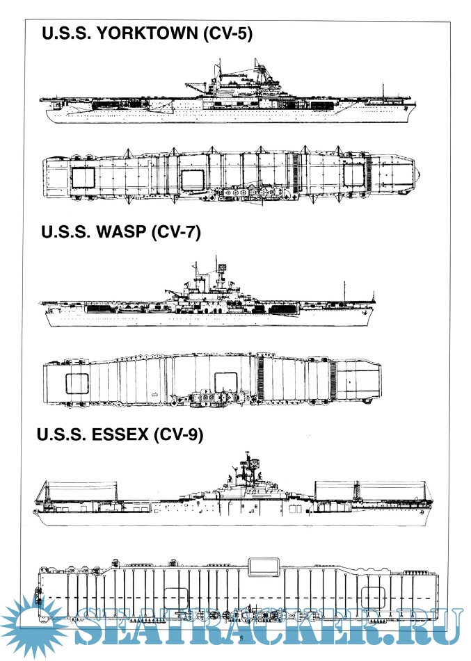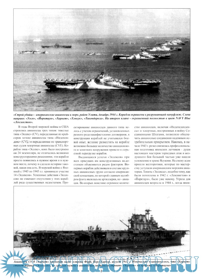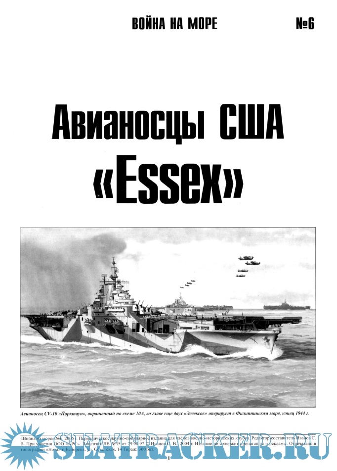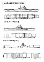 Описание: В годы Второй мировой войны в США строились авианосцы трех типов: тяжелые типа «Эссекс» (CV), переделанные из крейсеров легкие авианосцы типа «Индепенденс» (CVL) и переделанные из транспортных судов эскортные авианосцы (CVE). Корабли типа «Эссекс», коих было построено аж 24 экземпляра, не отличались великими конструкторскими решениями; эти корабли просто появились в нужное время и в нужном месте, почему и сделали историю таковой, какая она есть. В морской войне с Японией с 1943 по 1945 г.г. принимало участие 14 «Эссексов». Успешные действия «Эссексов» не означают отсутствия у этих кораблей ряда существенных недостатков. Проектирование авианосцев данного типа велось с учетом ограничений, установленных разного рода пацифистскими договорами, в конструкции кораблей не учитывался боевой опыт, желание разместить на корабле возможно большее количество авиационного и зенитного вооружения привело к серьезной перегрузке корабля.
