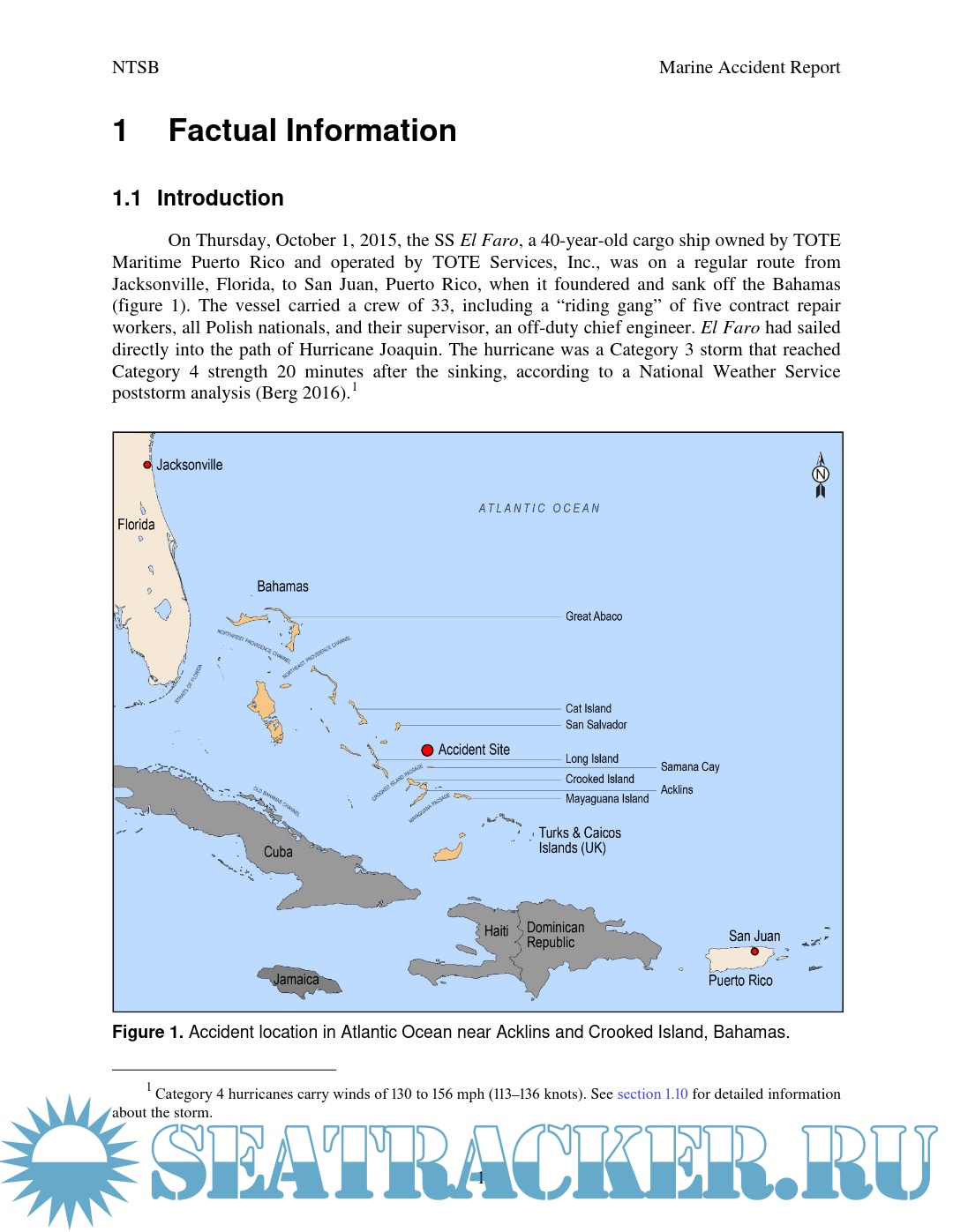 Sinking of US Cargo Vessel SS El Faro Atlantic Ocean, Northeast of Acklins and Crooked Island, Bahamas October 1, 2015