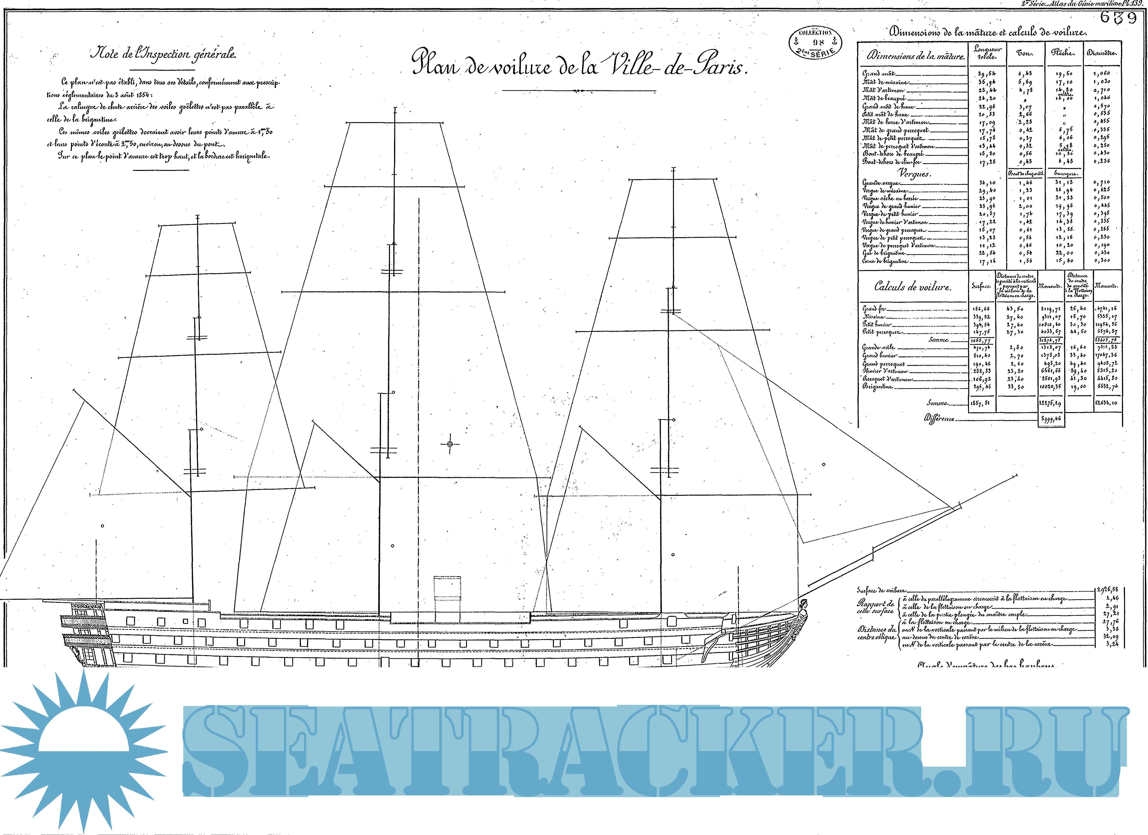 Чертежи французского парусного корабля 1-го ранга "Ville de Paris" 1850 год