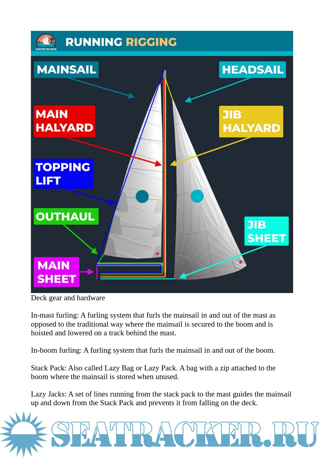• The names of different sails and their parts