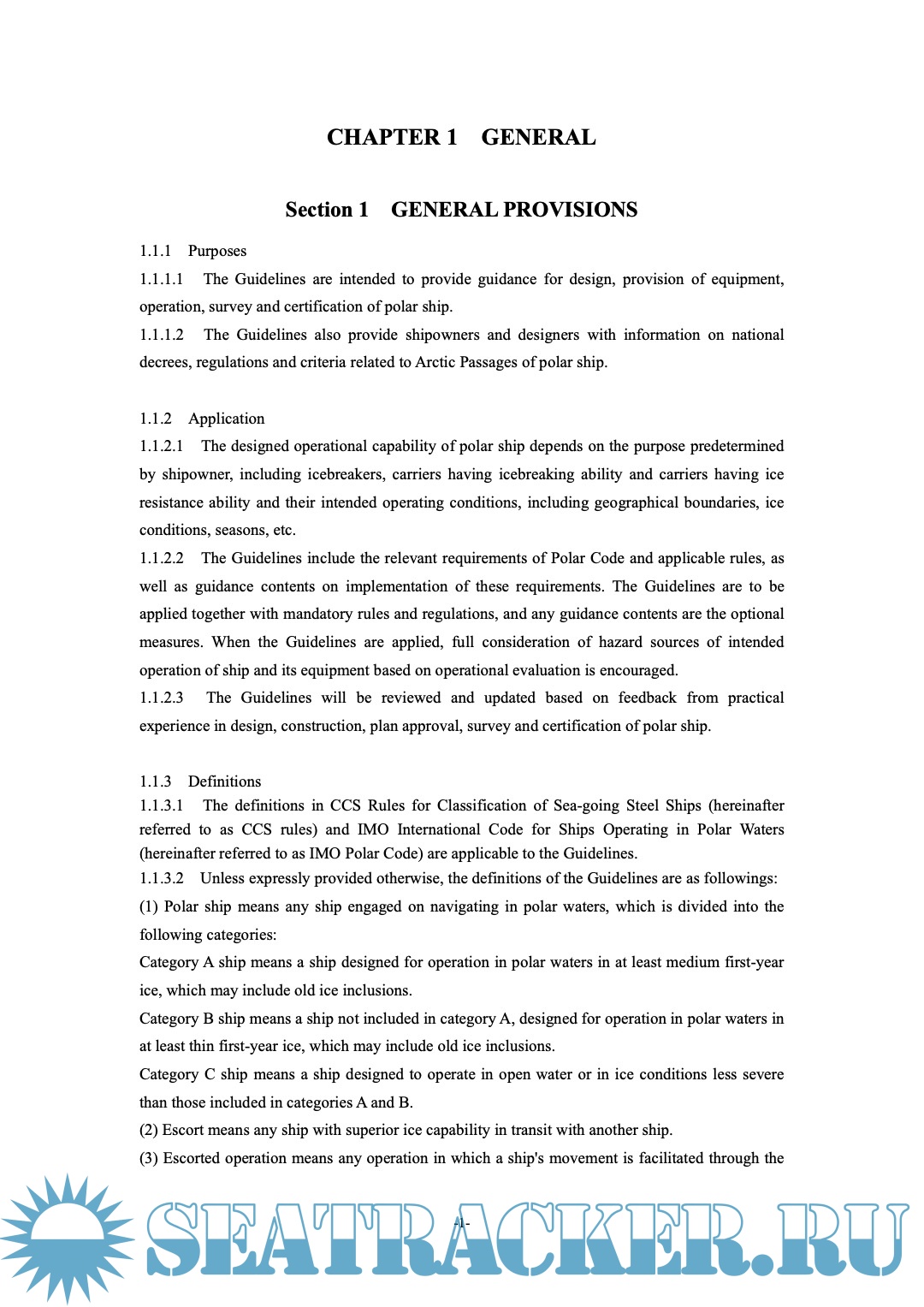 cold climate, and navigation in polar waters in summer. The design of these operation modes should be reviewed and determined based on economic means. The Guidelines are intended to provide technical guidance on the implementation of CCS ice class rules, CCS anti-cold climate rules and International Code for Ships Operating in Polar Waters of IMO.