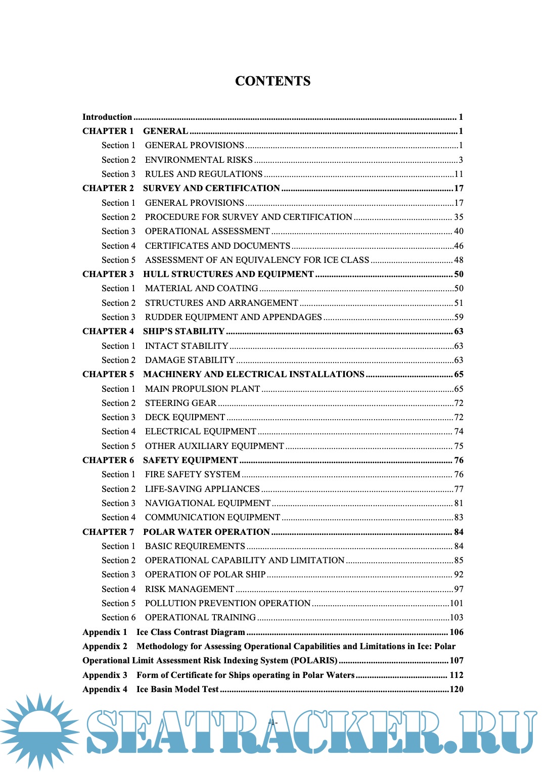 ship rules. But the specific ship design plan and operation procedure requirements are to depend on the actual demand of shipowners. There are different modes of operation for polar ship, including the navigation in polar waters in severe cold winter weather, occasional navigation in