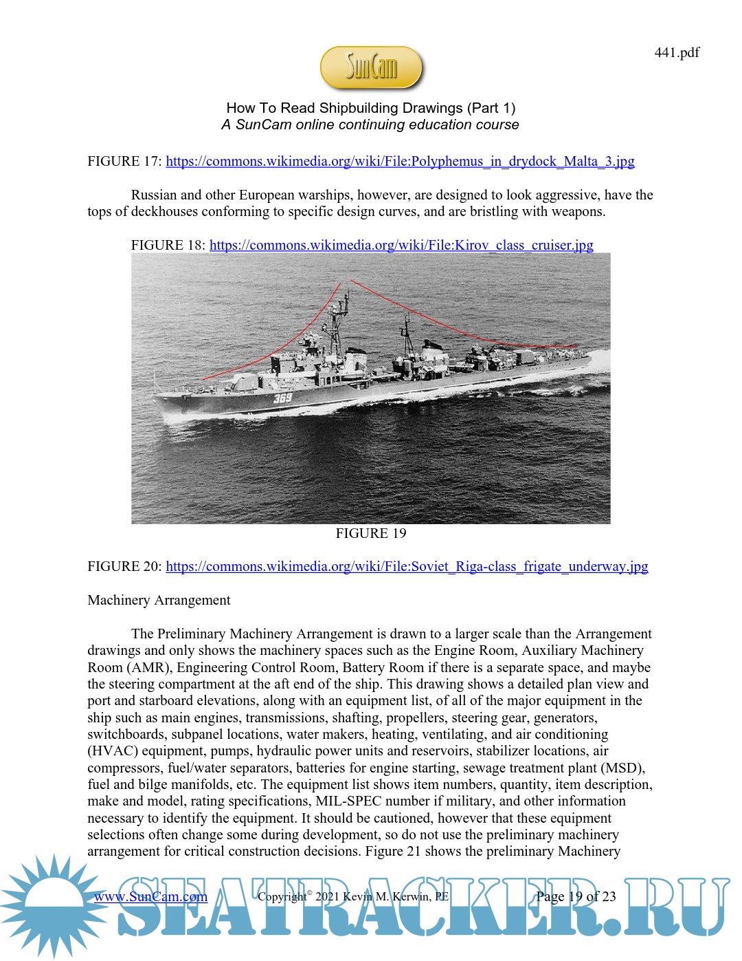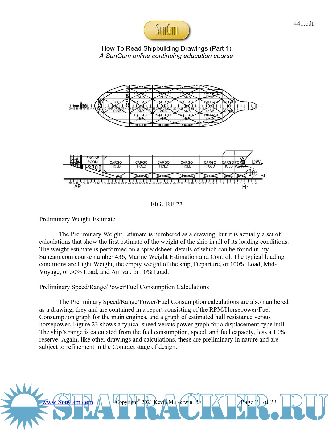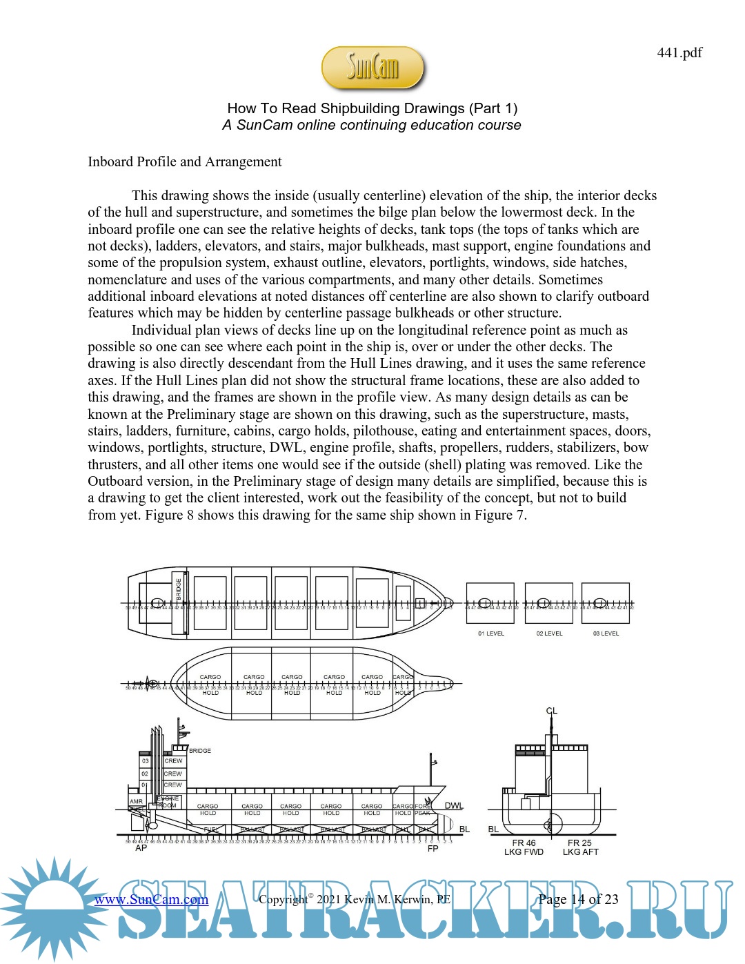 Year: 2021 Language: English Author: Kerwin K.M. Genre: Manual Publisher: Kevin M. Kerwin Format: PDF Quality: eBook Pages count: 23 Description: Shipbuilding drawings (or plans) are the detailed directions to building the ship. The types of these plans can be broken down into various groups to convey information pertinent to the design engineers and the various craft personnel that do the construction. Drawings, along with the calculations supporting them, are produced by either an outside design firm, the engineering department in the shipyard, or both. There are often many subcontractors who do design work in specific fields in addition to those personnel at the shipbuilder’s yard. This class will be concerned with how to read the drawings only; an educated skill which a surprising number of crafts people don’t possess.