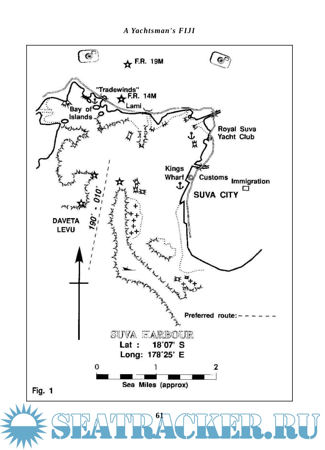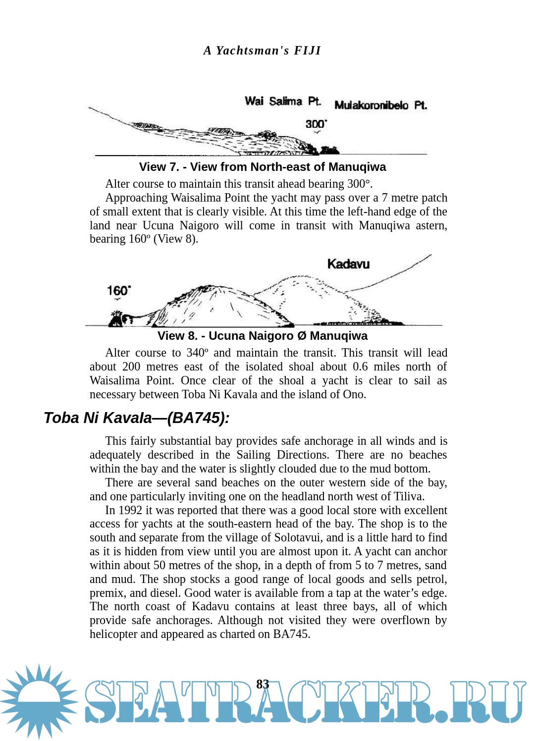 Charts were non-existent, but I was able to obtain some second-hand copies of 'Pickmere's' from a fellow yachtie who was moving on to Vanuatu. Until that time I had no knowledge of their existence and had already found that, except for the Pacific Islands Pilot Vol.II, published by The Hydrographer of the Navy, there was no information of any sort on the waters of Fiji, particularly those areas of interest to a yachtsman.