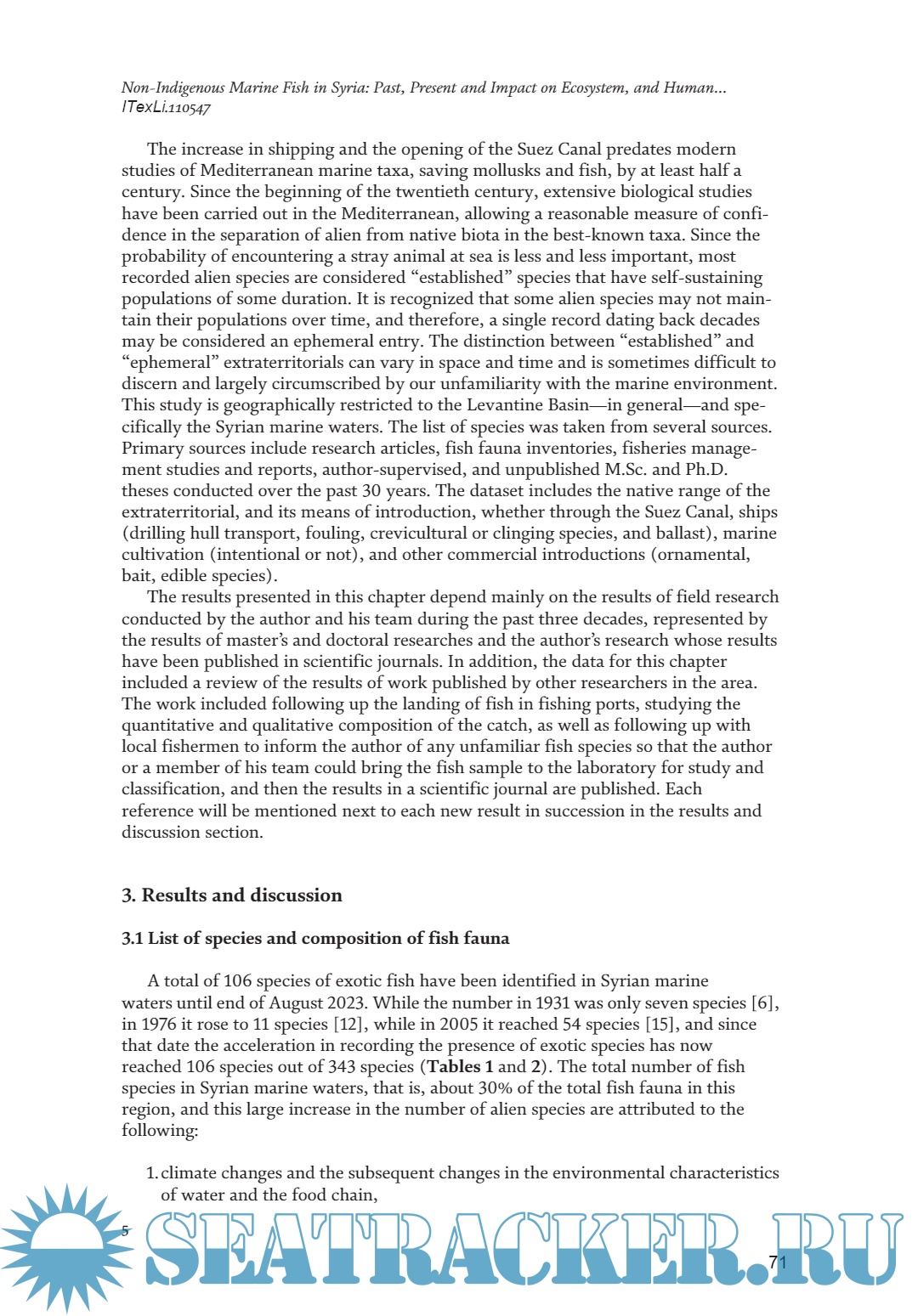 5. Non-Indigenous Marine Fish in Syria: Past, Present and Impact on Ecosystem, and Human Health