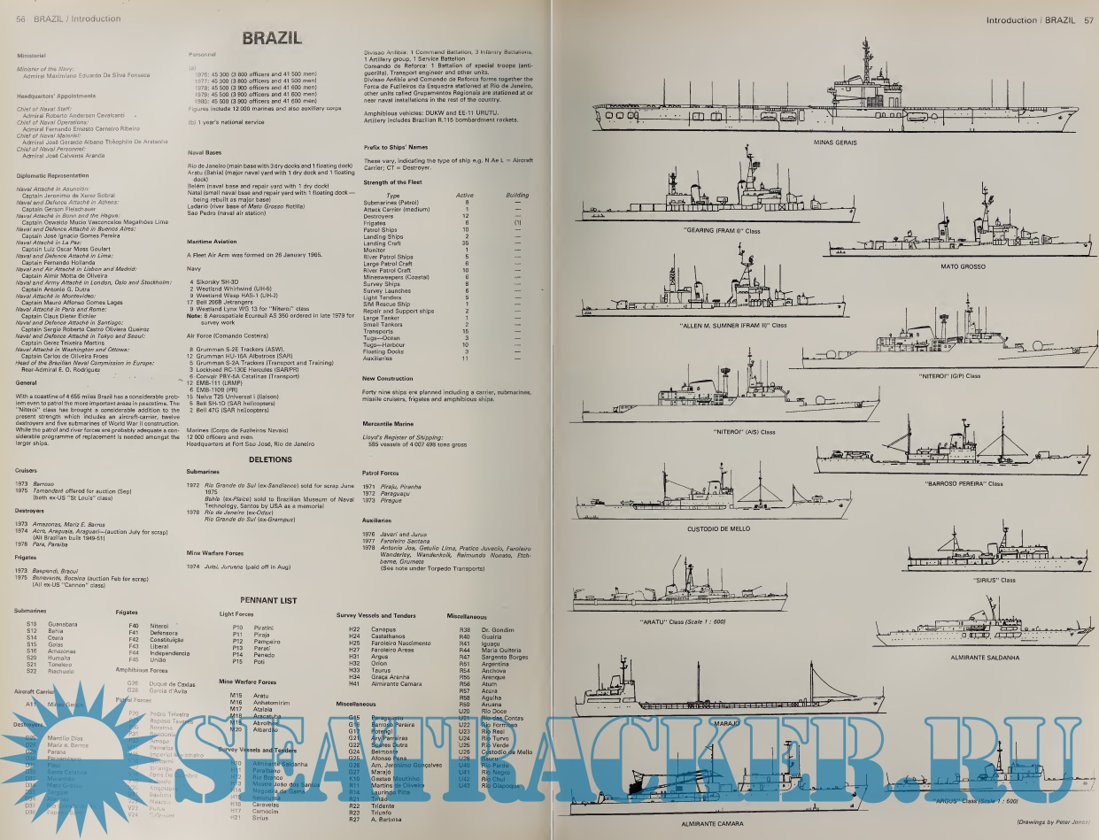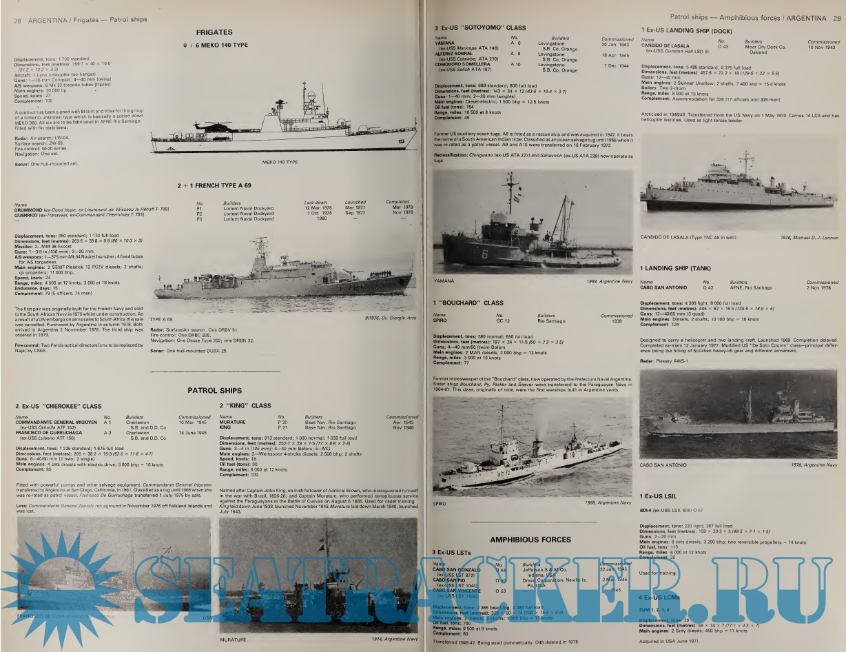 Year: 1981 Language: English Author: S.A.Sanders Genre: Catalog Format: PDF Quality: Scanned pages Pages count: 942 Description: "Jane's fighting ships" is your essential reference to the changing capabilities of modern navies and coast guards, their ships and maritime aircraft in service and under construction. There are authoritative inventories for 164 navies around the world complete with comprehensive details of: displacement and dimensions, main machinery, speed and range, weapons systems and sensors, construction and modernization programs, latest operational status and strength of fleet including sales to other navies. In addition, there is an annual executive overview of naval highlights worldwide, flags and ensigns, ranks and insignia, senior appointments and personnel numbers. It is intended for: armed forces, defense ministries, maritime SAR organizations, naval training establishments, coastguards, marine police, naval weapons manufacturers, shipbuilders, port authorities, maritime and safety agencies, defense analysts and academics, media.
