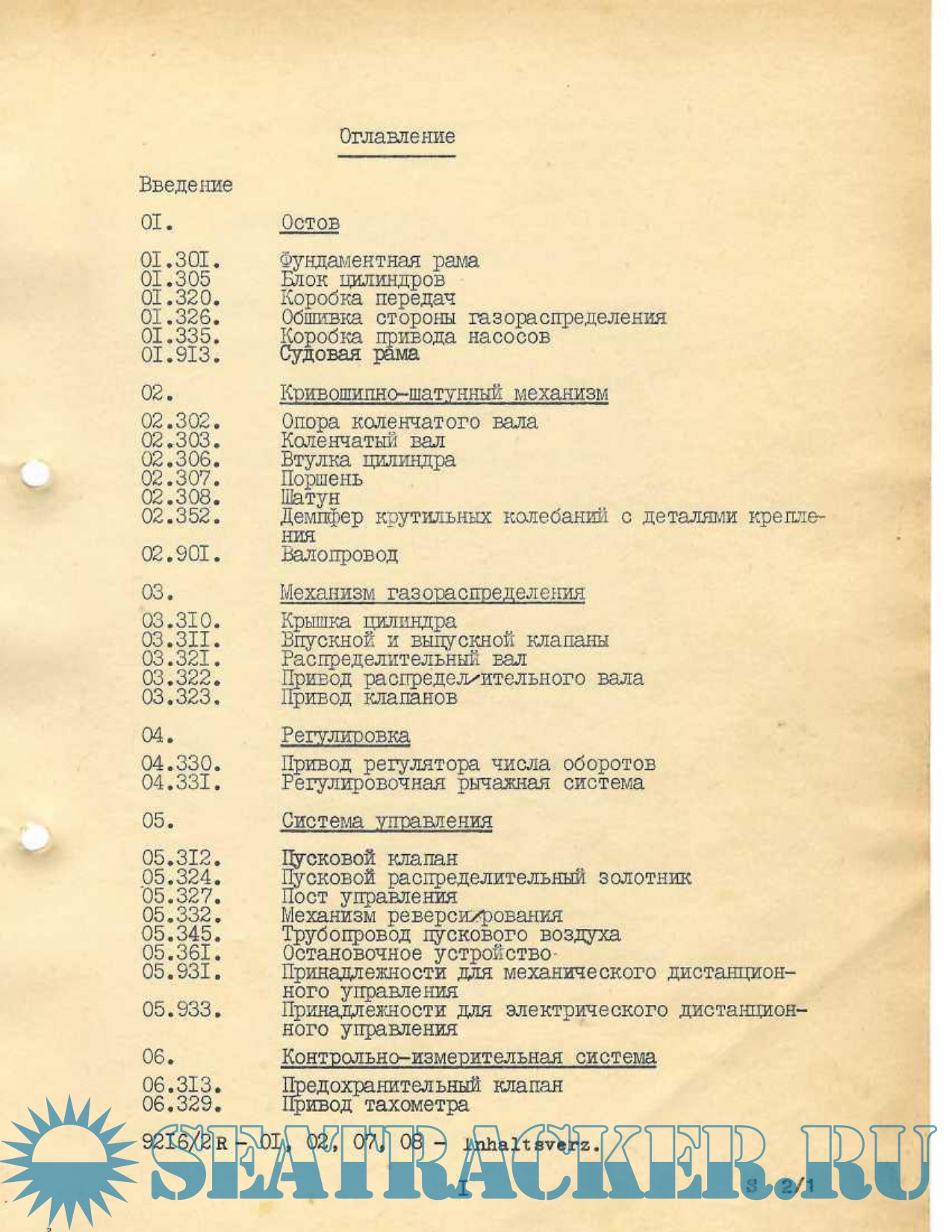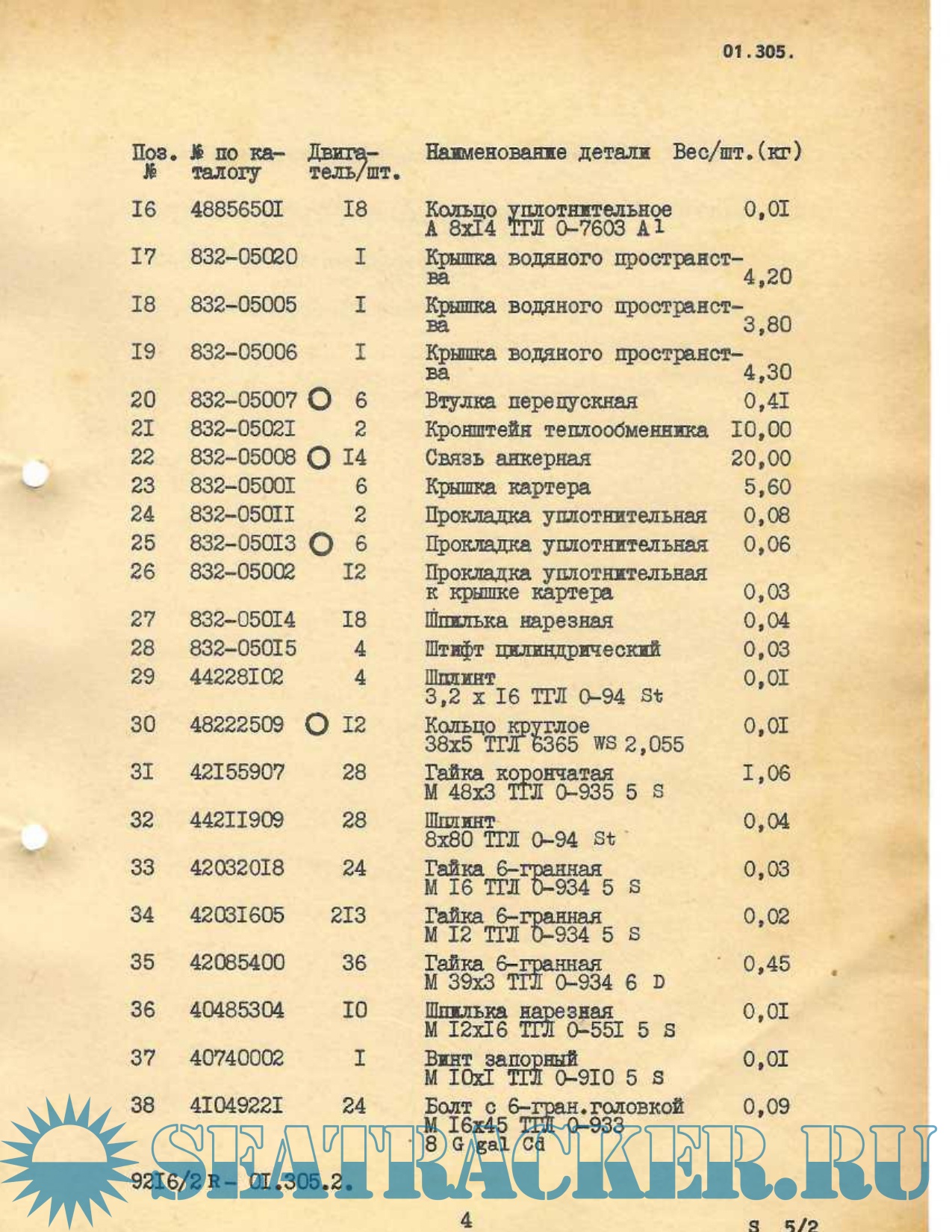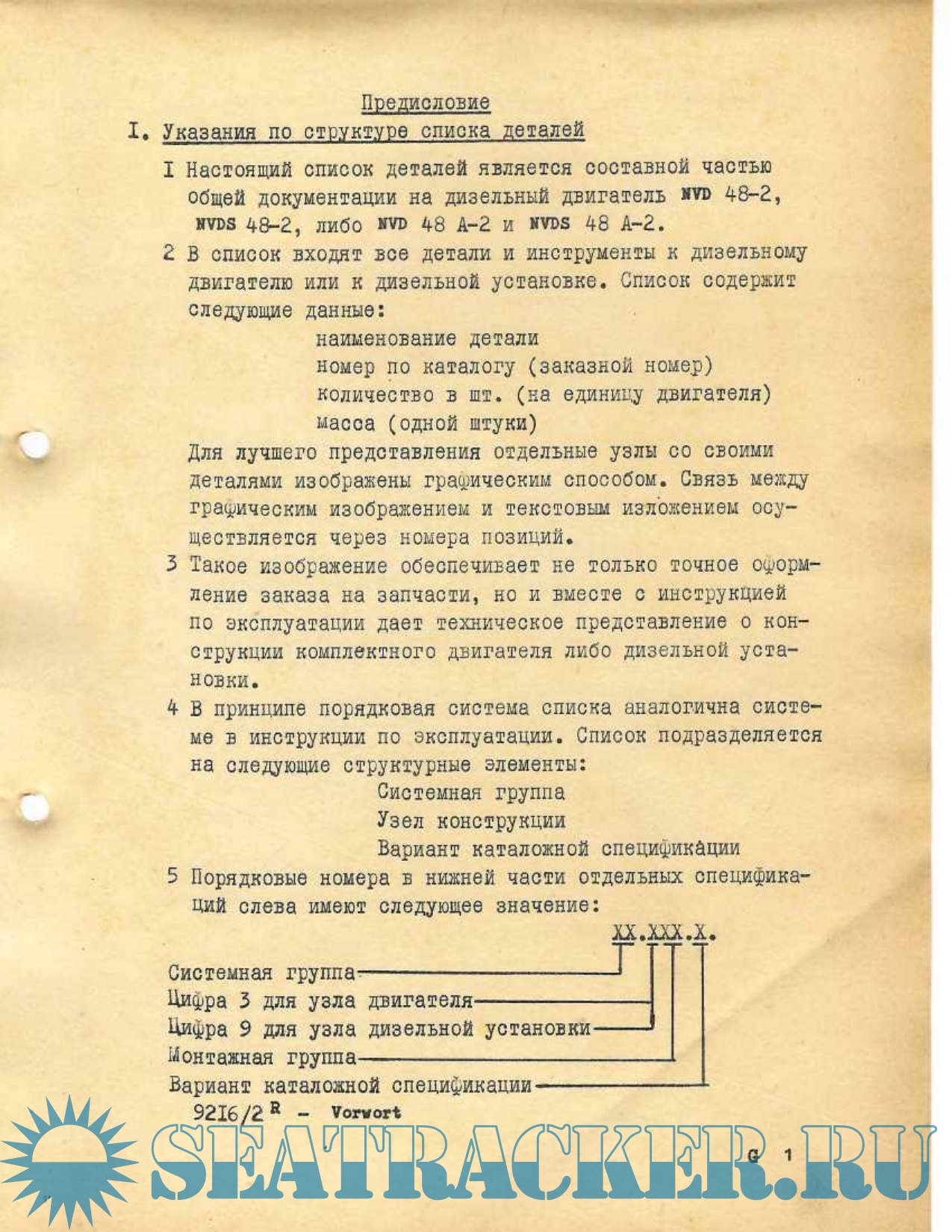 Список деталей для судового дизельного двигателя 8NVD 48-2, 8NVD 48-A-2, 8NVDS 48-2 и 8NVDS 48-A2…