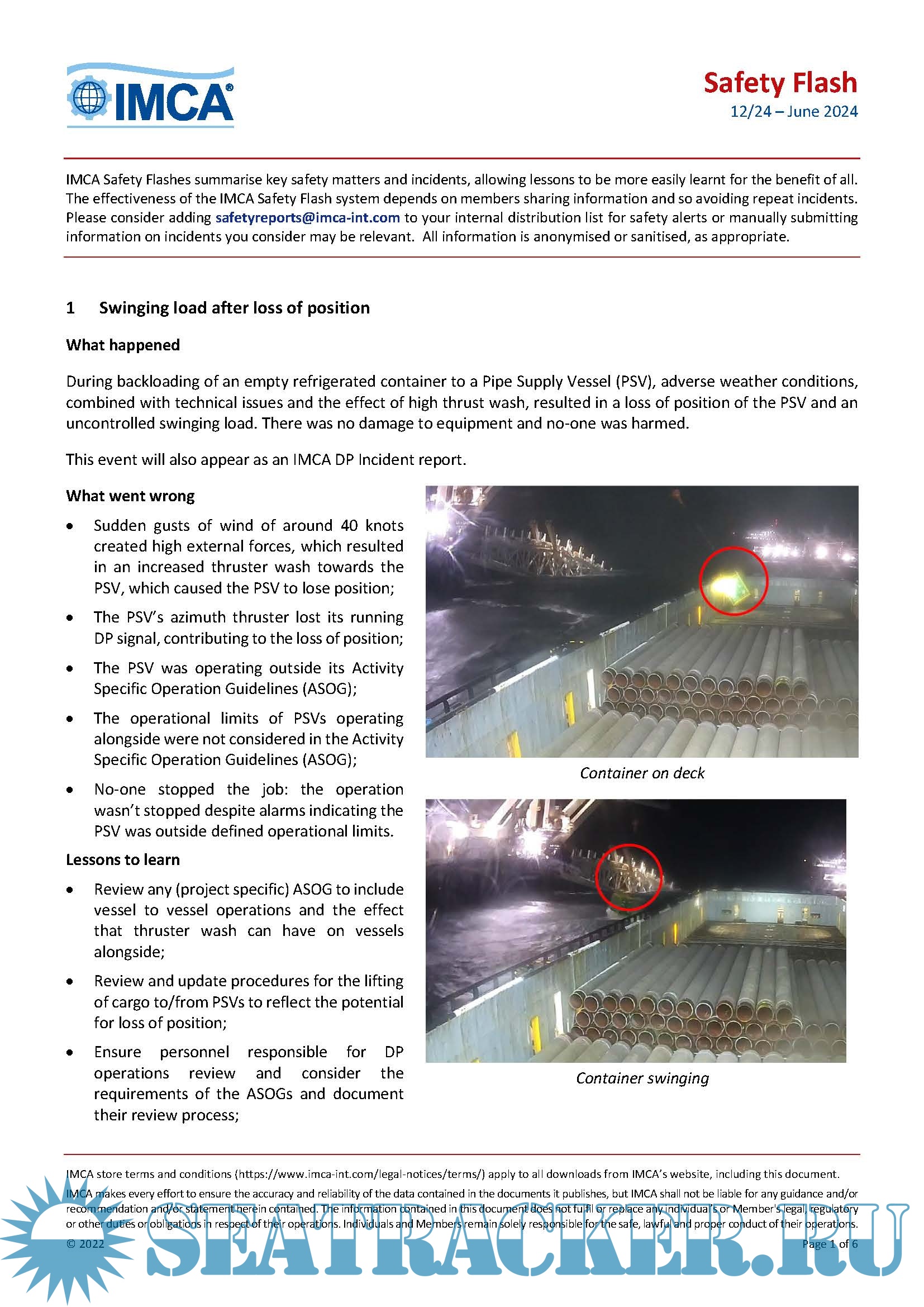 Safety Flash issue 22 (November) - IMCA [2024, PDF]