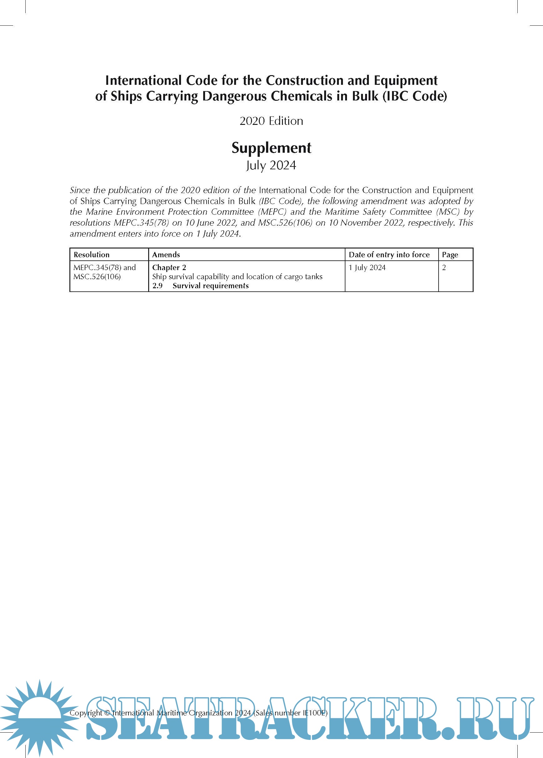 in Bulk (IBC Code) 2020 Edition Supplement July 2024