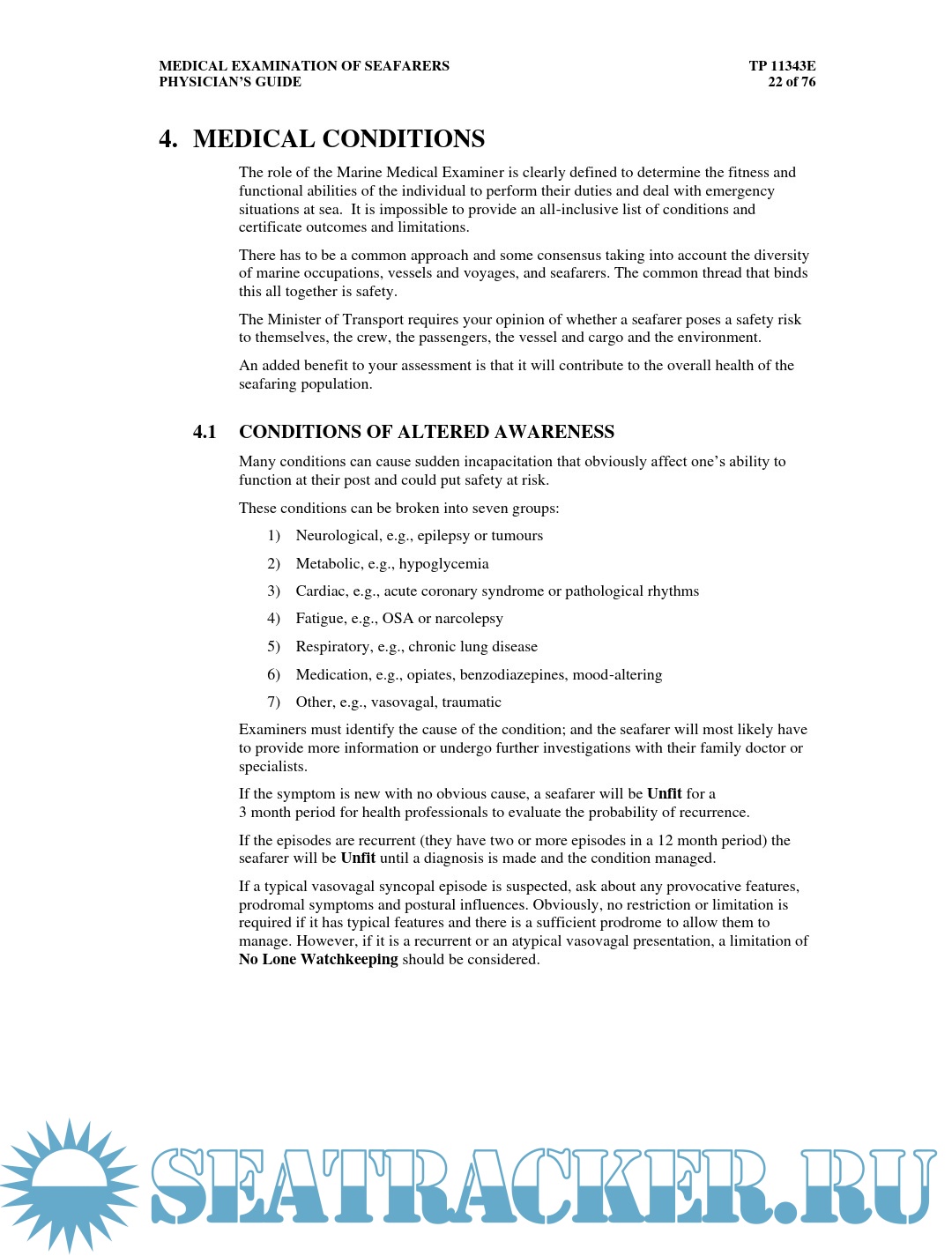 • highlights the physical requirements seafarers need to meet in order to receive a medical certificate;