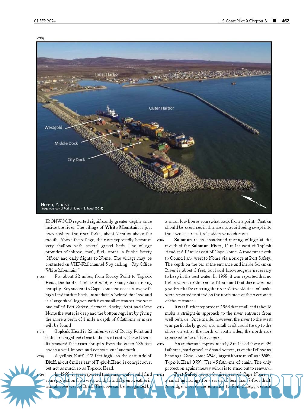 Topics in the Coast Pilot include channel descriptions, anchorages, bridge and cable clearances, currents, tide and water levels, prominent features, pilotage, towage, weather, ice conditions, wharf descriptions, dangers, routes, traffic separation schemes, small-craft facilities, and Federal regulations applicable to navigation.