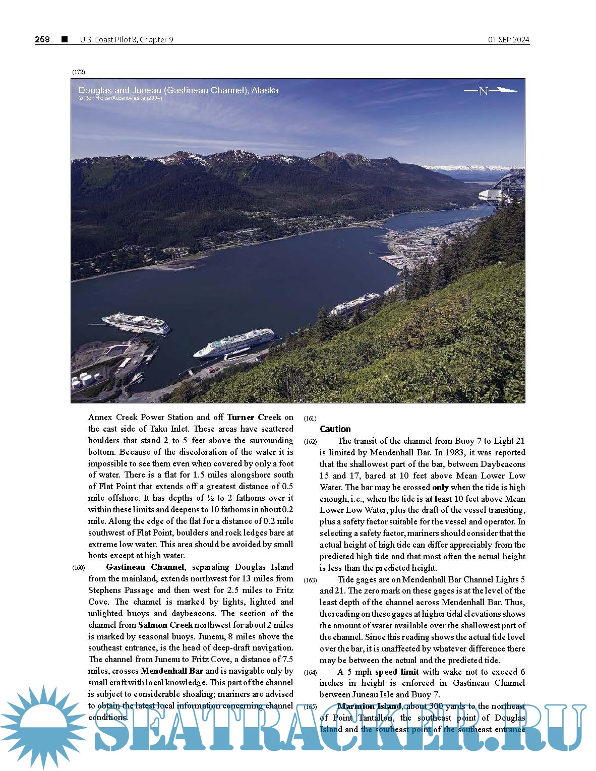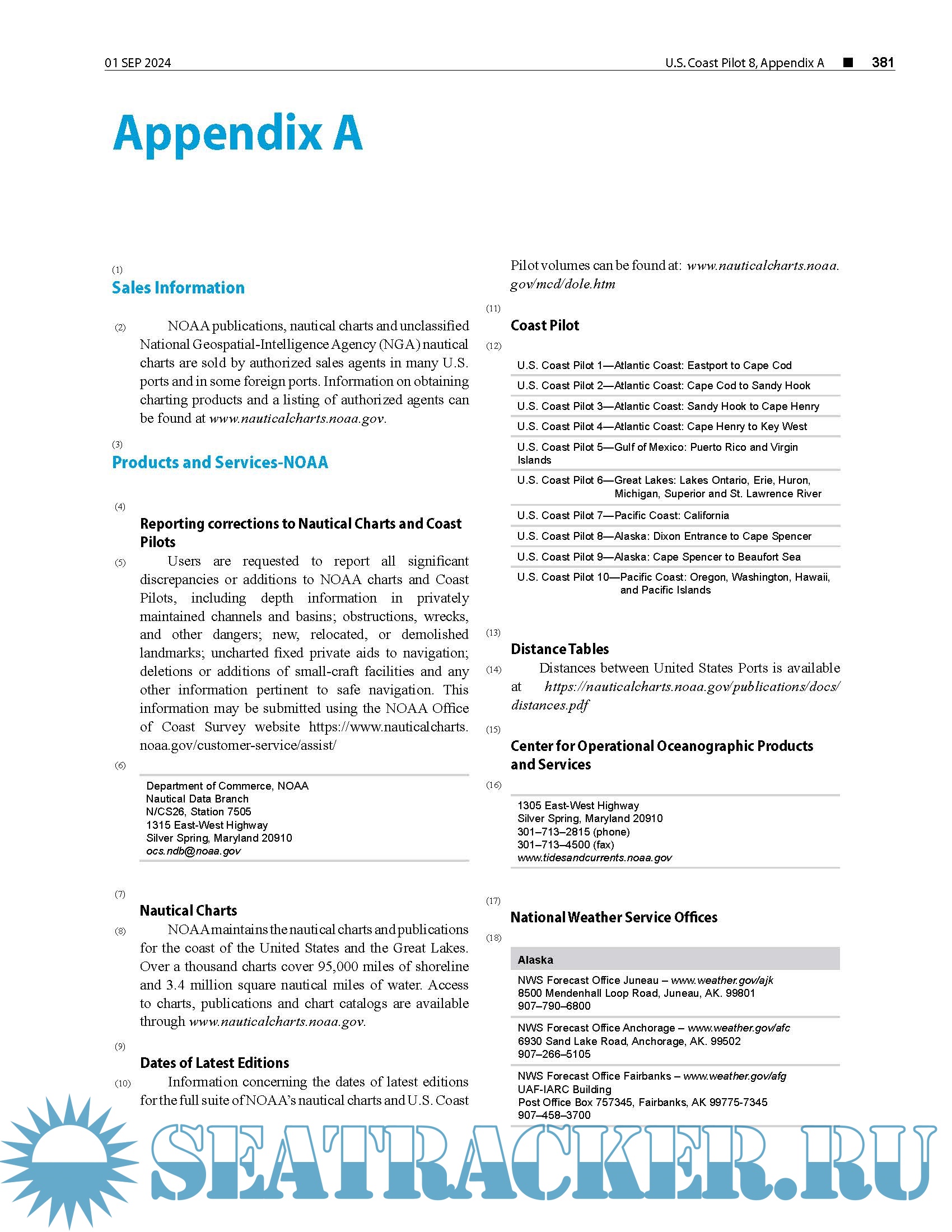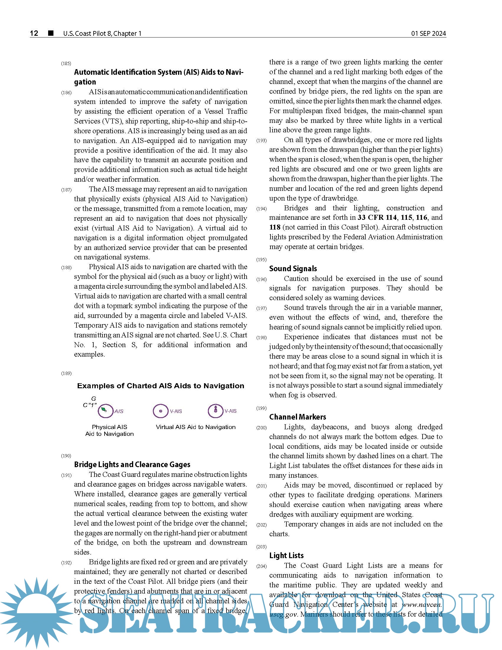 Year: 2024 Language: English Author: NOAA Genre: Documentation Publisher: NOAA Edition: 2024 (46th) Edition Format: PDF Quality: eBook Pages count: 416 Description: The United States Coast Pilot® consists of a series of nautical books that cover a variety of information important to navigators of coastal and intracoastal waters and the Great Lakes. Issued in ten volumes, they contain supplemental information that is difficult to portray on a nautical chart. Topics in the Coast Pilot include channel descriptions, anchorages, bridge and cable clearances, currents, tide and water levels, prominent features, pilotage, towage, weather, ice conditions, wharf descriptions, dangers, routes, traffic separation schemes, small-craft facilities, and Federal regulations applicable to navigation. This edition cancels the 45th Edition and includes all previously published corrections. This publication has been updated through: 01-Sep-2024