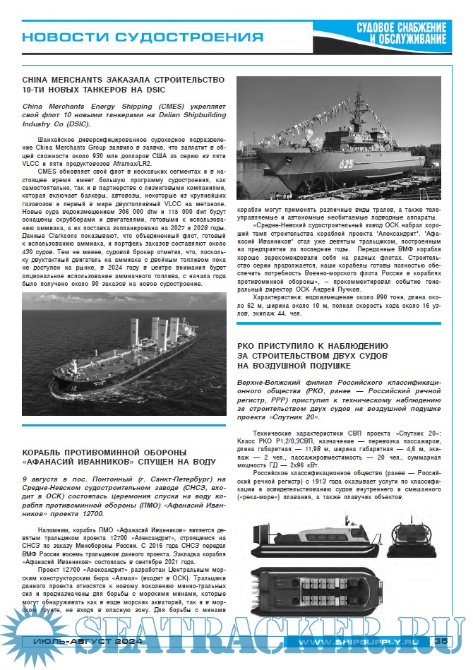 Год выпуска: 2024 Язык: Русский Автор: группа авторов Жанр: Периодическое издание (журнал) Издание: 2024-4 Формат: PDF Качество: Изначально компьютерное (eBook) Количество страниц: 56 Описание: ''Судовое снабжение и обслуживание'' периодический информационный бюллетень, издается с 1999 года и в настоящее время по праву занимает одно из ведущих мест среди специализированных отраслевых печатных изданий.Бюллетень стал надежным маркетинговым инструментом для технического менеджмента судостроительных, судоремонтных и снабженческих компаний. Более 500 отечественных и зарубежных фирм рекламодателей успешно сотрудничают с журналом с целью расширения своего бизнеса.Бесспорным преимуществом является бесплатное распространение издания целевой адресной рассылкой: судостроительным и судоремонтным предприятиям; морским и речным портам; судовладельцам морского, речного, промыслового флота; производителям и поставщикам судового оборудования, снабжения и материалов; предприятиям обслуживания флота (всего более 9000 компаний РФ). В журнале представлен весь спектр судового оборудования, комплектующих, запчастей, снабжения и материалов (с указанием контактных данных фирм производителей и поставщиков).
