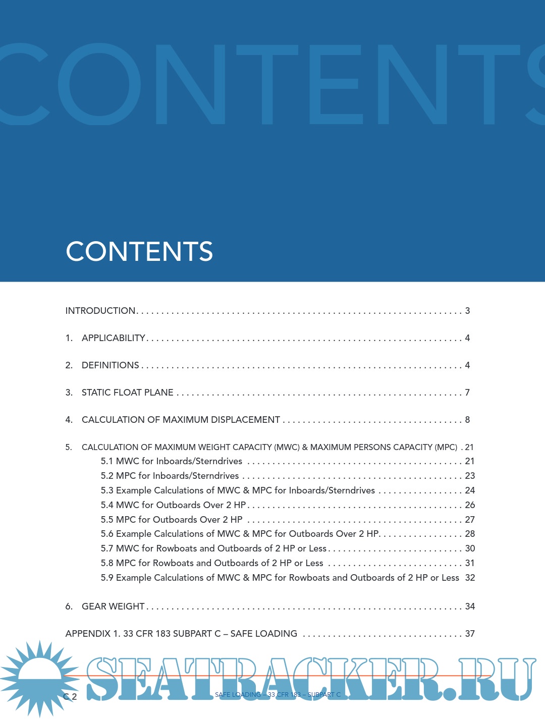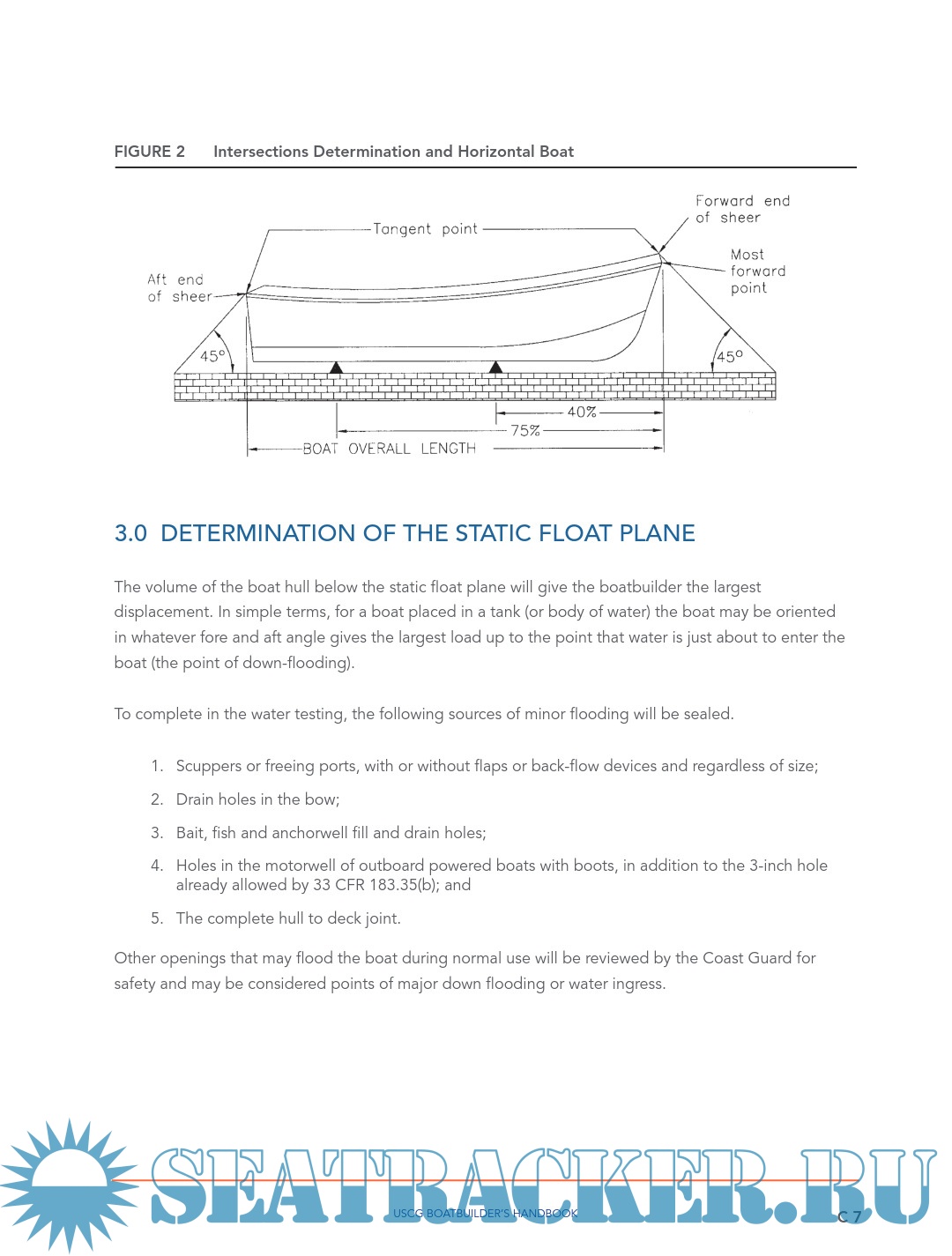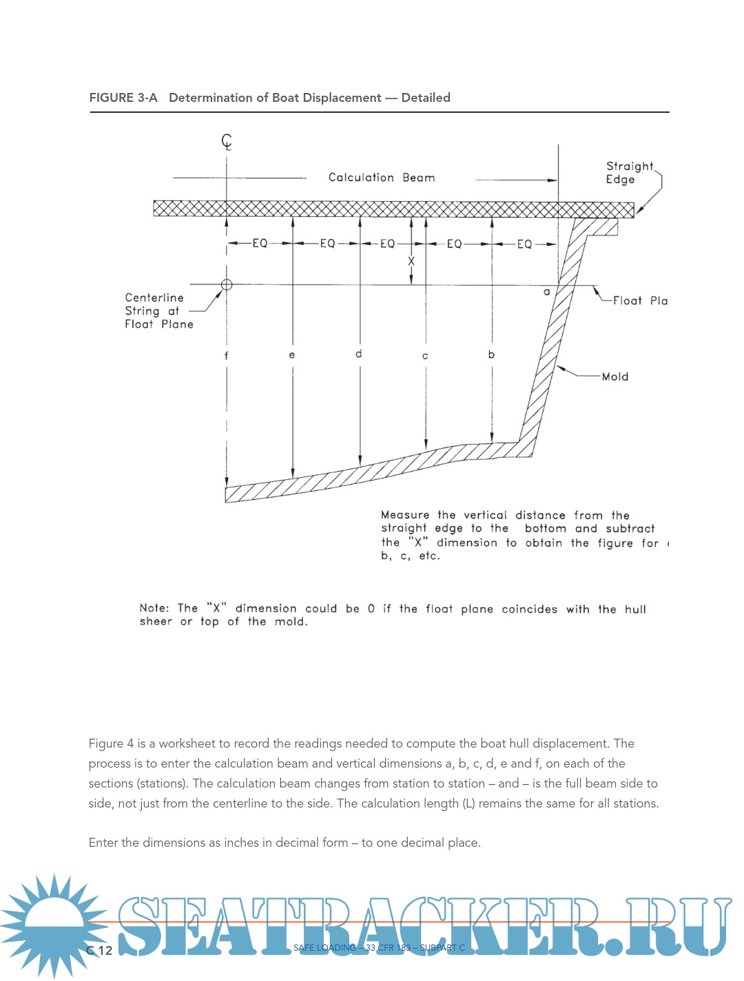 Description: INTRODUCTION Boatbuilders are responsible to determine the capacity figures placed on their monohull boats of less than 20 feet in length. The previous guideline (Display of Capacity Information) has covered the manner in which the capacity and powering figures are to be shown on the USCG capacity label. The ‘Powering’ guideline covers the manner to establish an upper powering limit. This ‘Safe Loading’ guideline covers the maximum capacity and persons capacity lines on the USCG capacity label. It discusses the methods for a boatbuilder to test for or calculate the upper limit for weight capacity and persons capacity, both in terms of pounds and in a whole number of persons.