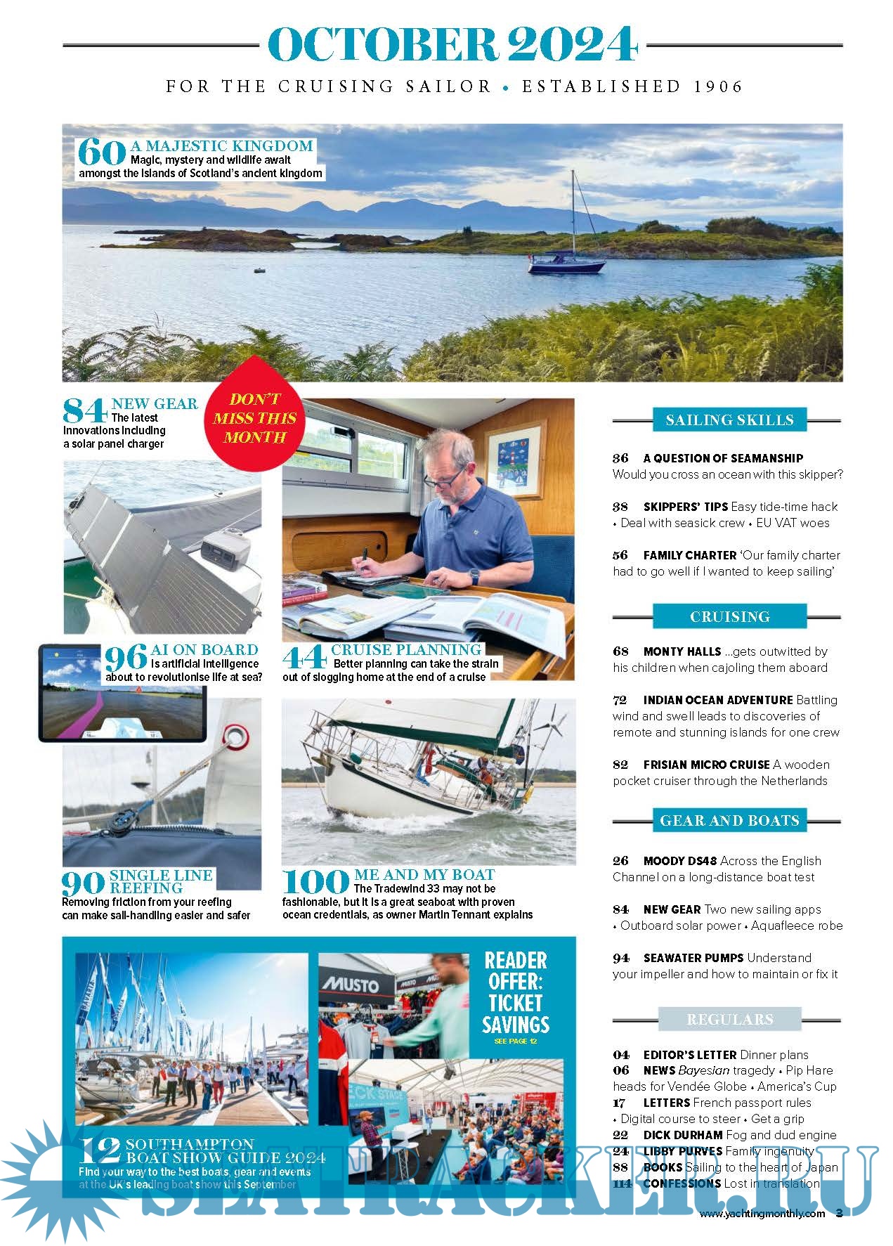 Year: 2024 Language: English Author: Theo Stocker (Editor) Genre: Periodical publication Publisher: Future Publishing Limited Edition: October, 2024 Format: PDF Quality: eBook Pages count: 116 Description: Yachting Monthly is at the heart of the British yachting market and is for people who actively sail their boats whether cruising across the channel, around the coast or further afield in blue waters. It provides an entertaining mix of vital information for cruising yachtsmen with all levels of experience, which maximises their enjoyment, increases their skills and gives them the confidence to broaden their horizons.