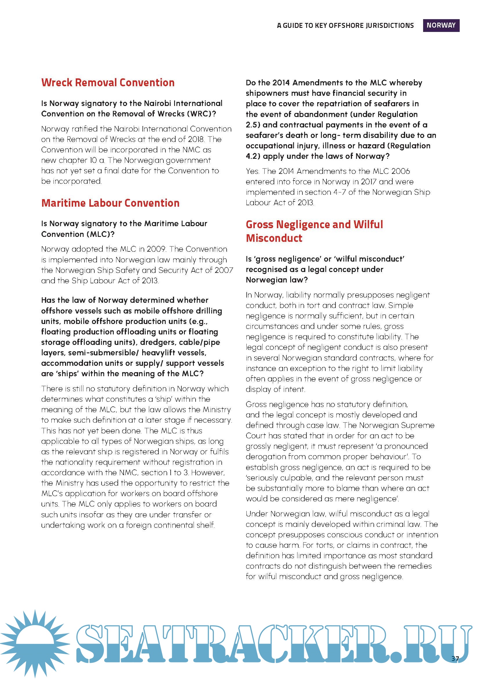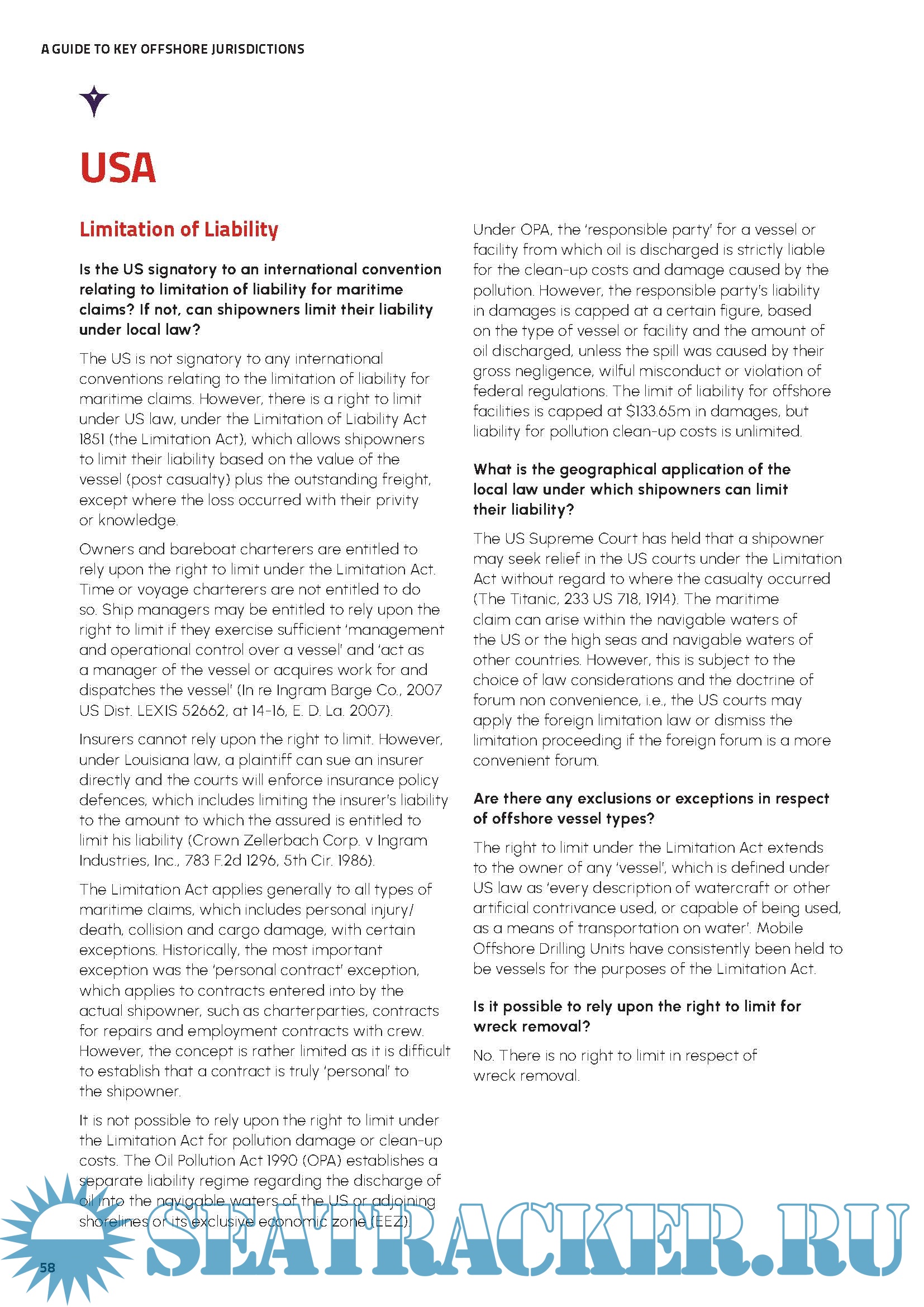 Year: 2024 Language: English Author: NorthStandard Genre: Textbook Edition: September 2024 Format: PDF Quality: eBook Pages count: 62 Description: Regularly exploring new opportunities in diverse territories we are frequently asked how the law in a particular jurisdiction may impact the enforceability of key contractual provisions. Having extensively engaged with our contacts around the world, we thought that we would share our findings with the wider membership and so have produced this jurisdiction guide in which we consider these issues in fifteen separate regions. This guide therefore provides a snapshot view for the selected countries, where consider: - the right to limit liability - specifically, the right to limit liability in respect of wreck removal - the application and geographical reach of the Bunkers Convention, CLC Convention, Wreck Removal Convention, Maritime Labour Convention or any related domestic legislation - the enforceability of knock-for-knock provisions in a contract and whether there are any gross negligence or wilful misconduct exceptions to this - the applicability of time bars in respect of tort, contract and personal injury