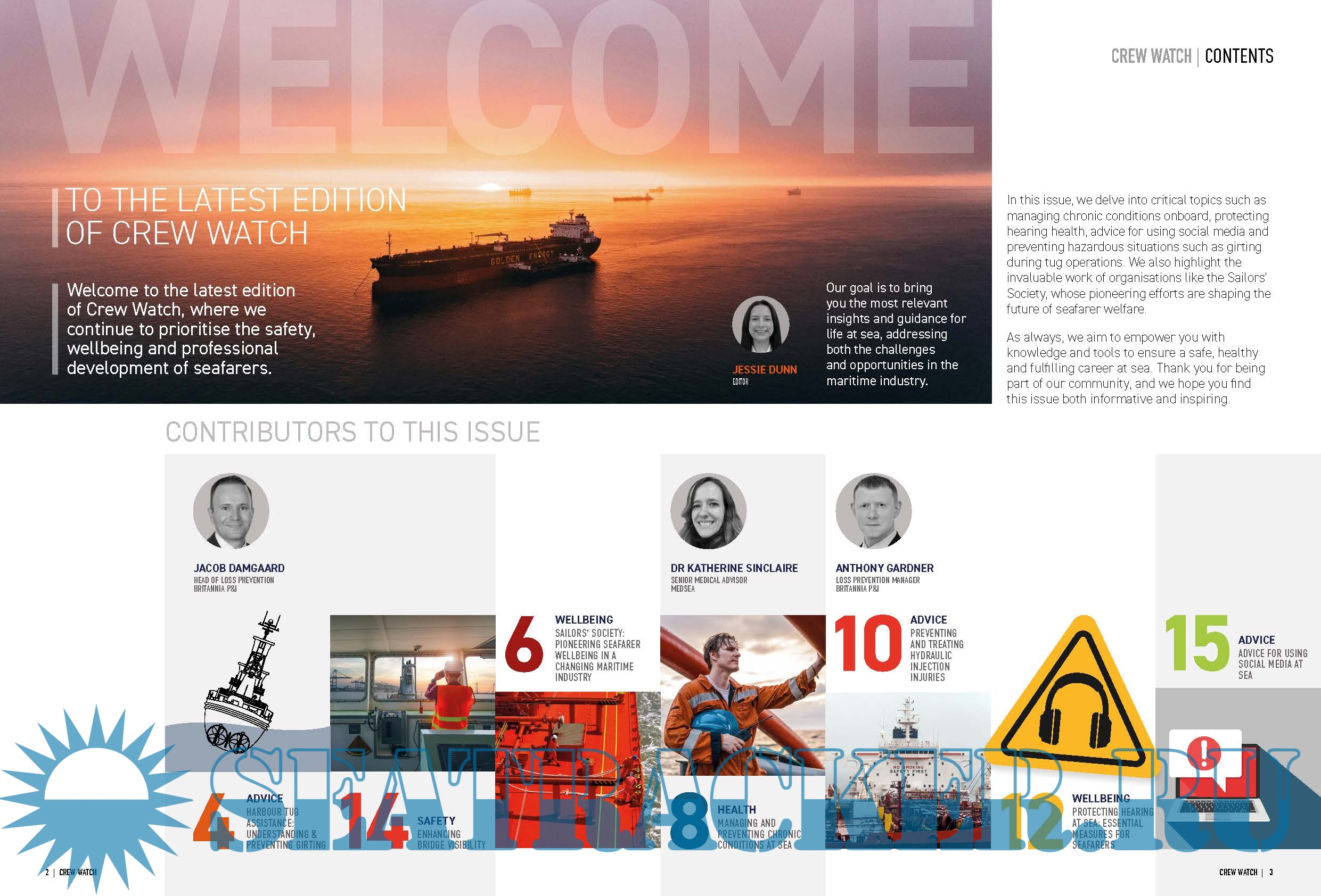In this issue, delve into critical topics such as managing chronic conditions onboard, protecting hearing health, advice for using social media and preventing hazardous situations such as girting during tug operations. Also highlight the invaluable work of organisations like the Sailors' Society, whose pioneering efforts are shaping the future of seafarer welfare.