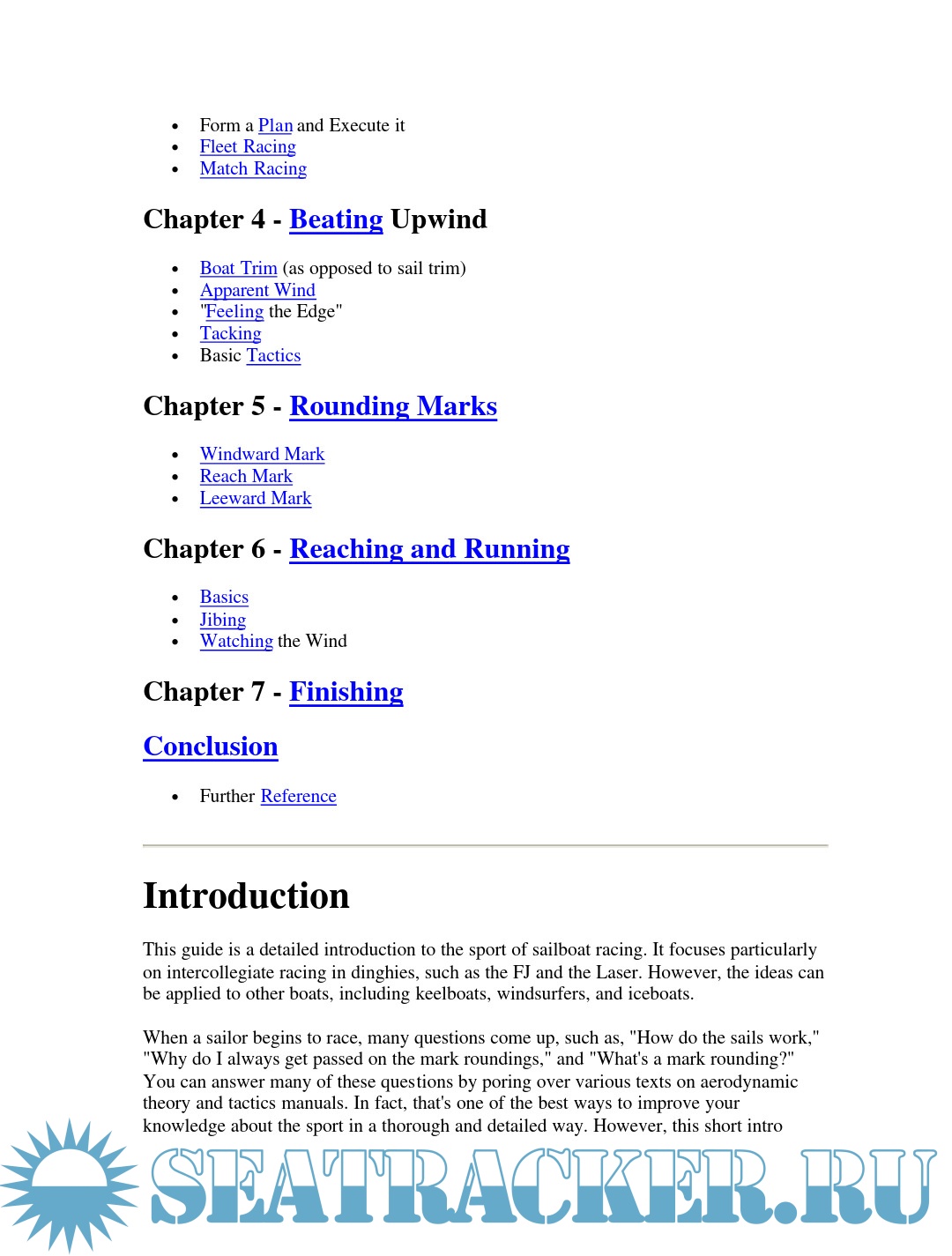 Description: This guide is a detailed introduction to the sport of sailboat racing. It focuses particularly on intercollegiate racing in dinghies, such as the FJ and the Laser. However, the ideas can