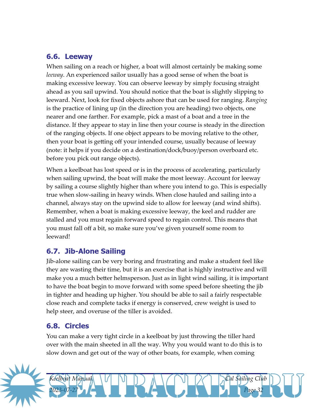 and planning maneuvers before executing them. Having a thorough understanding of basic sail mechanics will also be a good starting point for learning to sail keelboats.