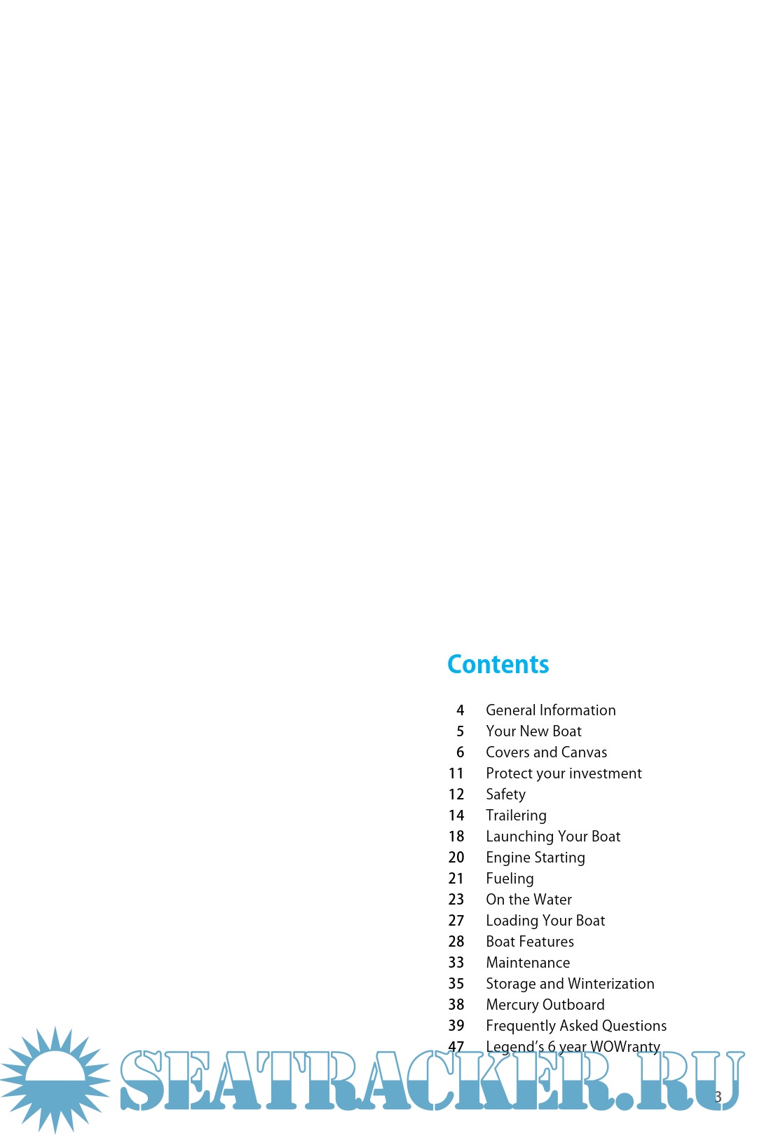 Description: This manual serves as a comprehensive guide to your new Legend boat. The manual is not model-specific*, and was written for a first-time boat owner and operator, though we encourage both new and seasoned boaters alike to read through the manual and familiarize themselves with the different systems, components, and features of their boat.